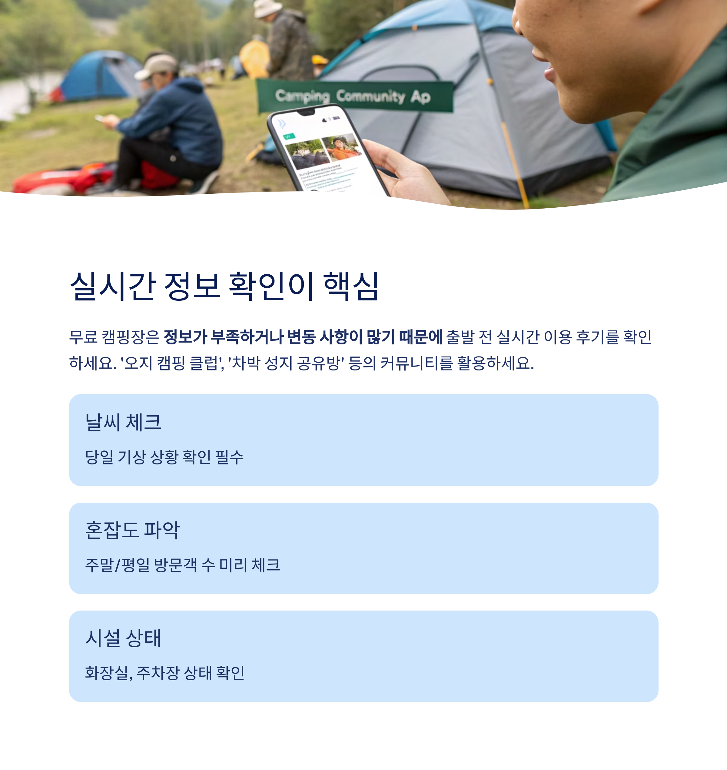 무료 캠핑장의 특성상 정보가 부족하거나 변동 사항이 많기 때문에