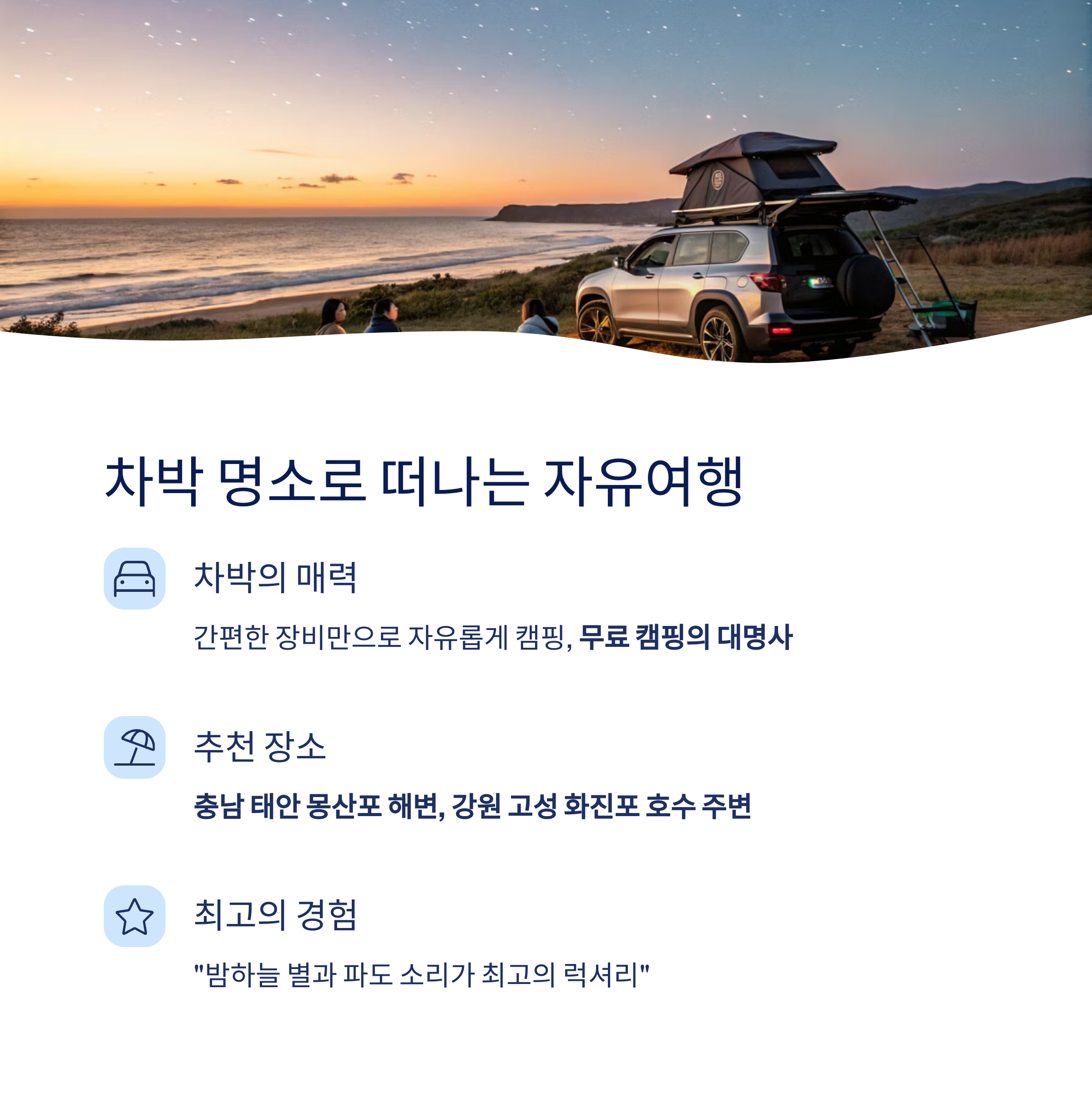 차박은 간편한 장비만으로 자유롭게 캠핑할 수 있어