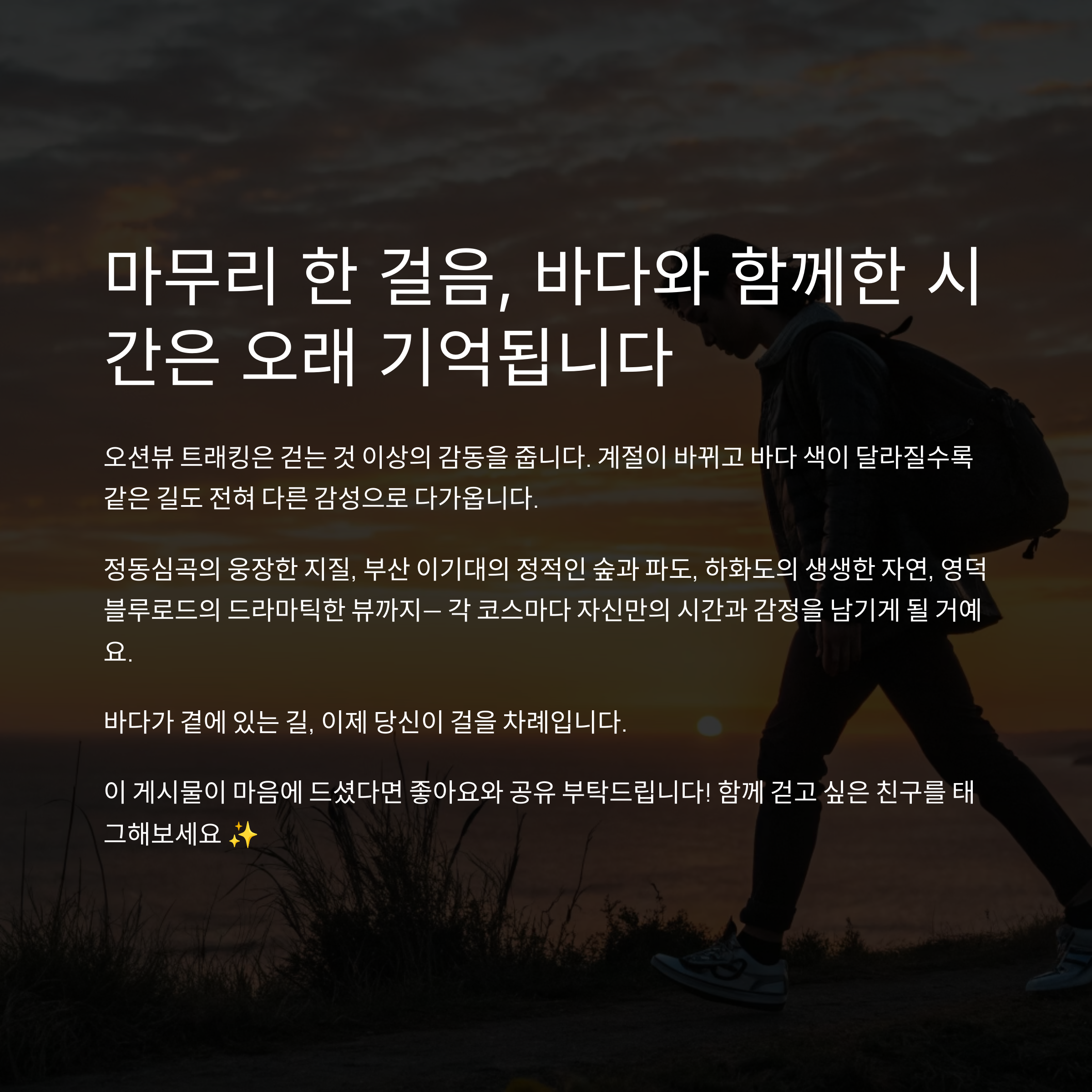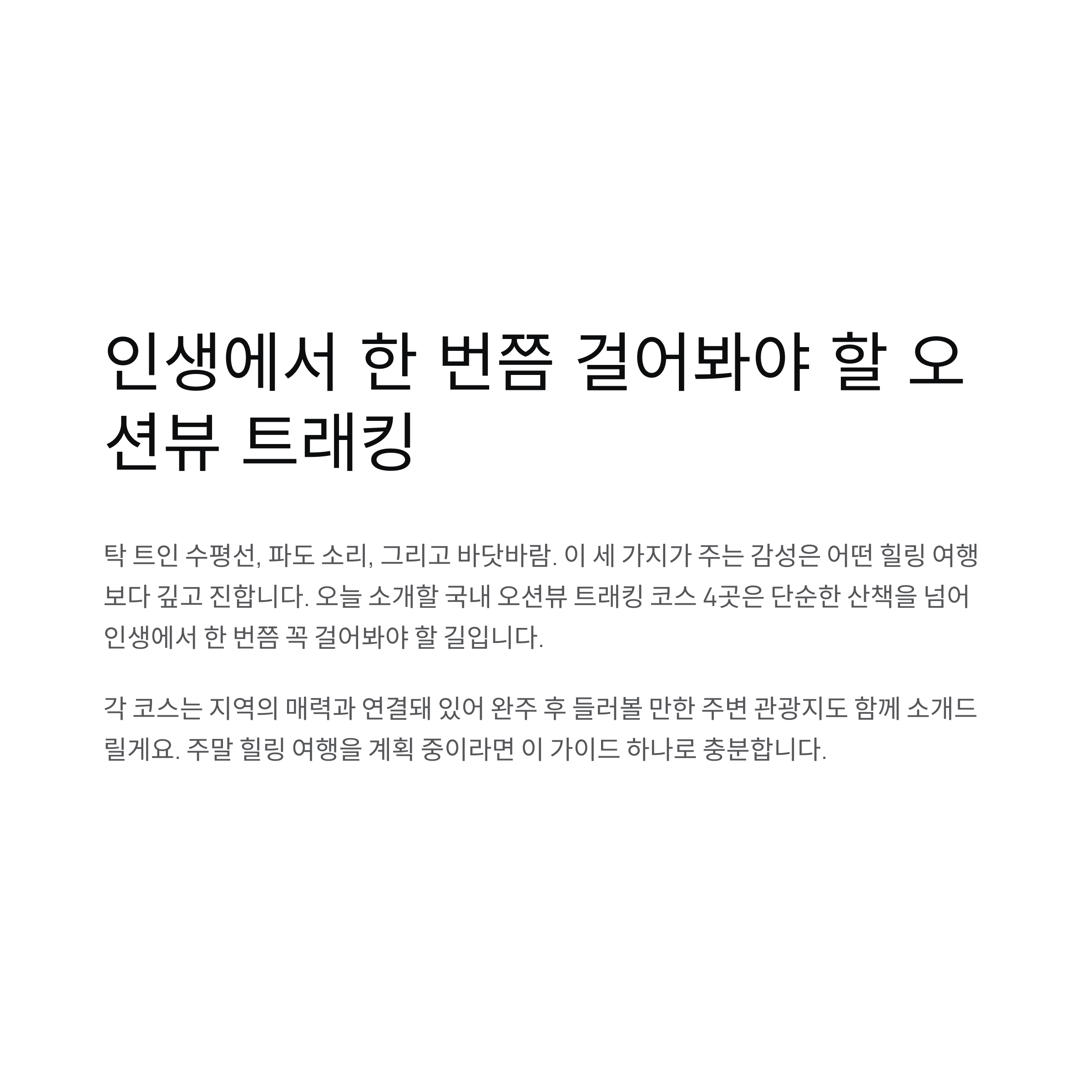 어떤 힐링 여행보다 깊고 진합니다. 오늘 소개할 국내 오션뷰 트래킹 코스