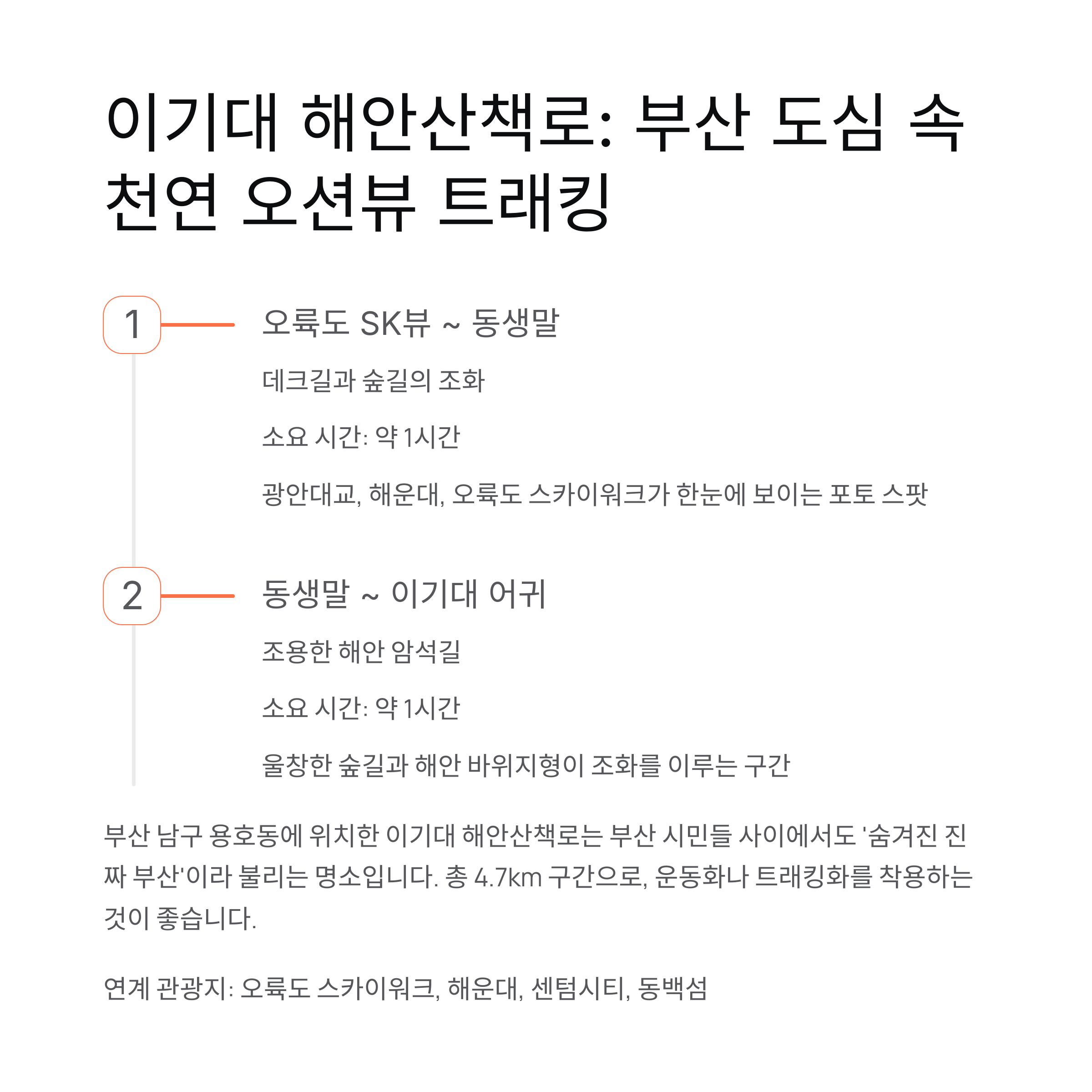 오륙도 SK뷰 아파트에서 시작해 동생말, 이기대 어귀까지 이어지는 약 4.7km의
