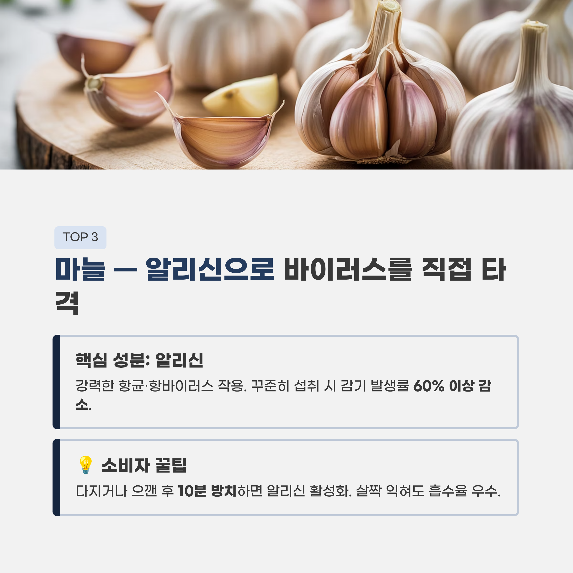 4. [TOP 3] 마늘: 알리신으로 바이러스를 직접 타격