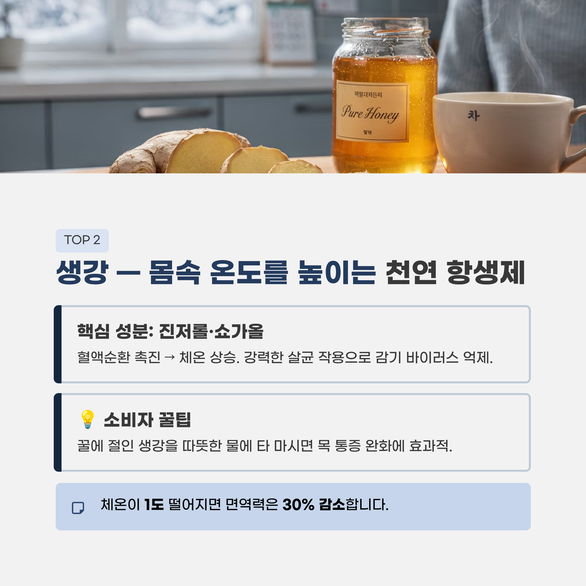 3. [TOP 2] 생강: 몸속 온도를 높이는 '천연 항생제'