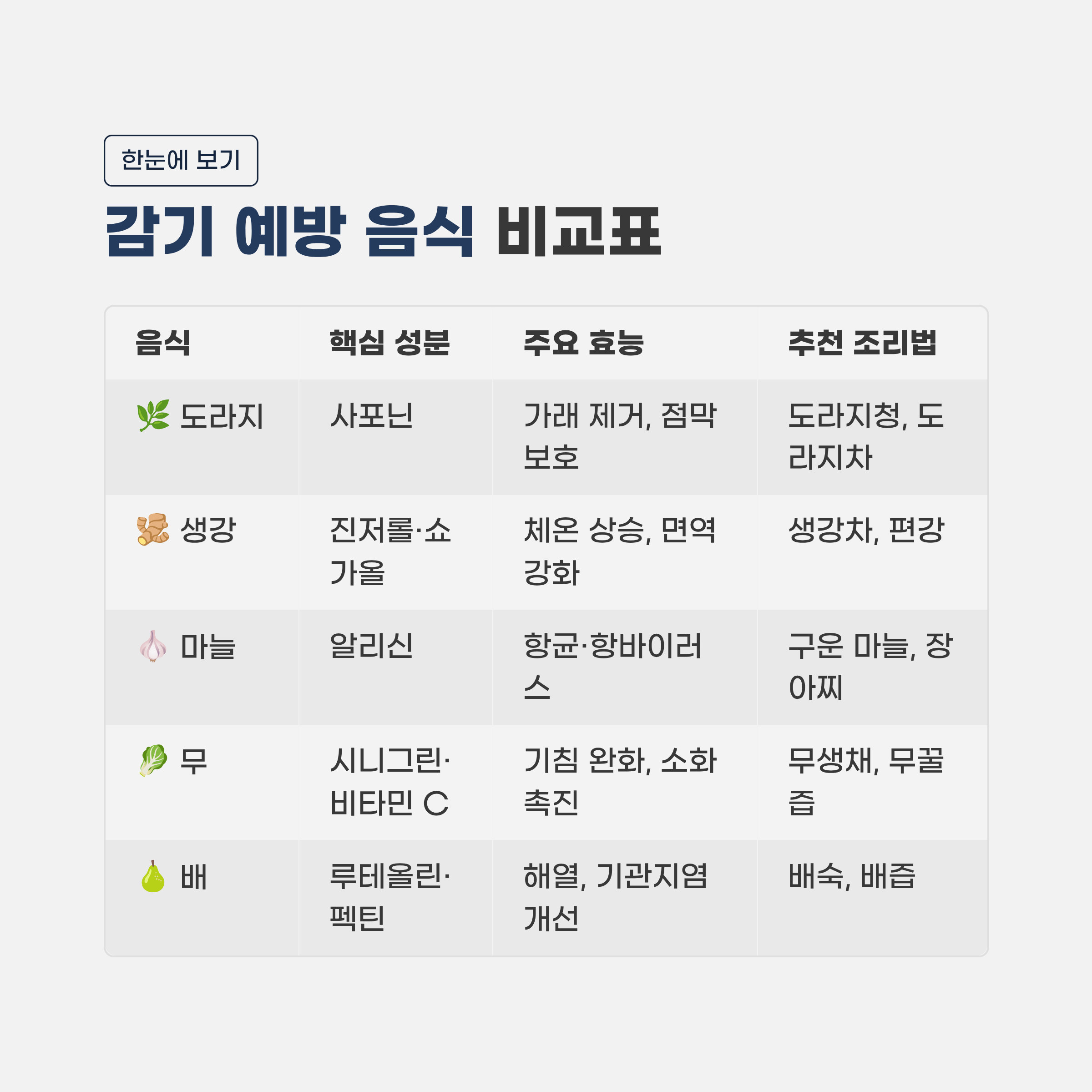 9. [요약표] 한눈에 보는 감기 예방 음식 비교