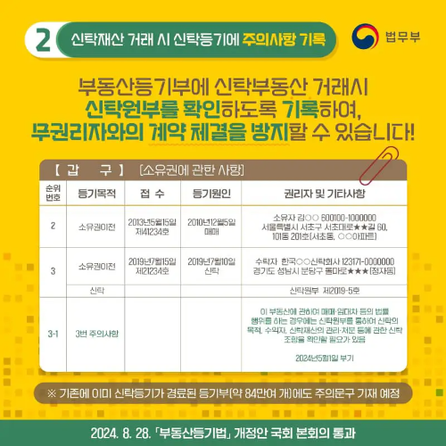 - 신탁재산 거래 시 등기부의 주의사항을 반드시 확인하세요.