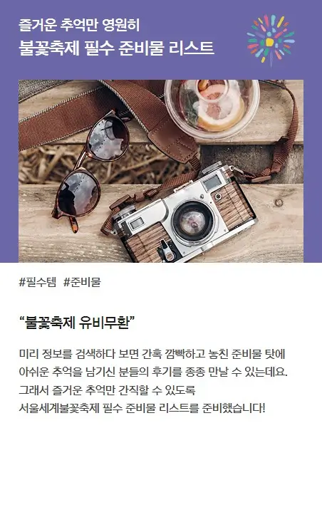 | 2024 서울세계불꽃축제 : 최고의 명당과 티켓 예매 꿀팁 한화불꽃축제 유료 좌석? 그 가치가 충분한 이유 (2) | 2024.09.08 |
