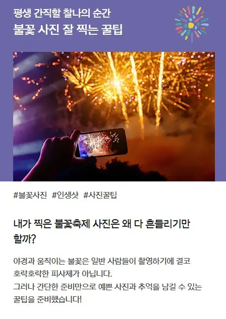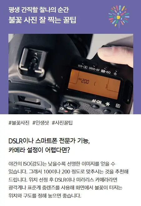불꽃 사진 잘 찍는 꿀팁 한화에서 알려주는