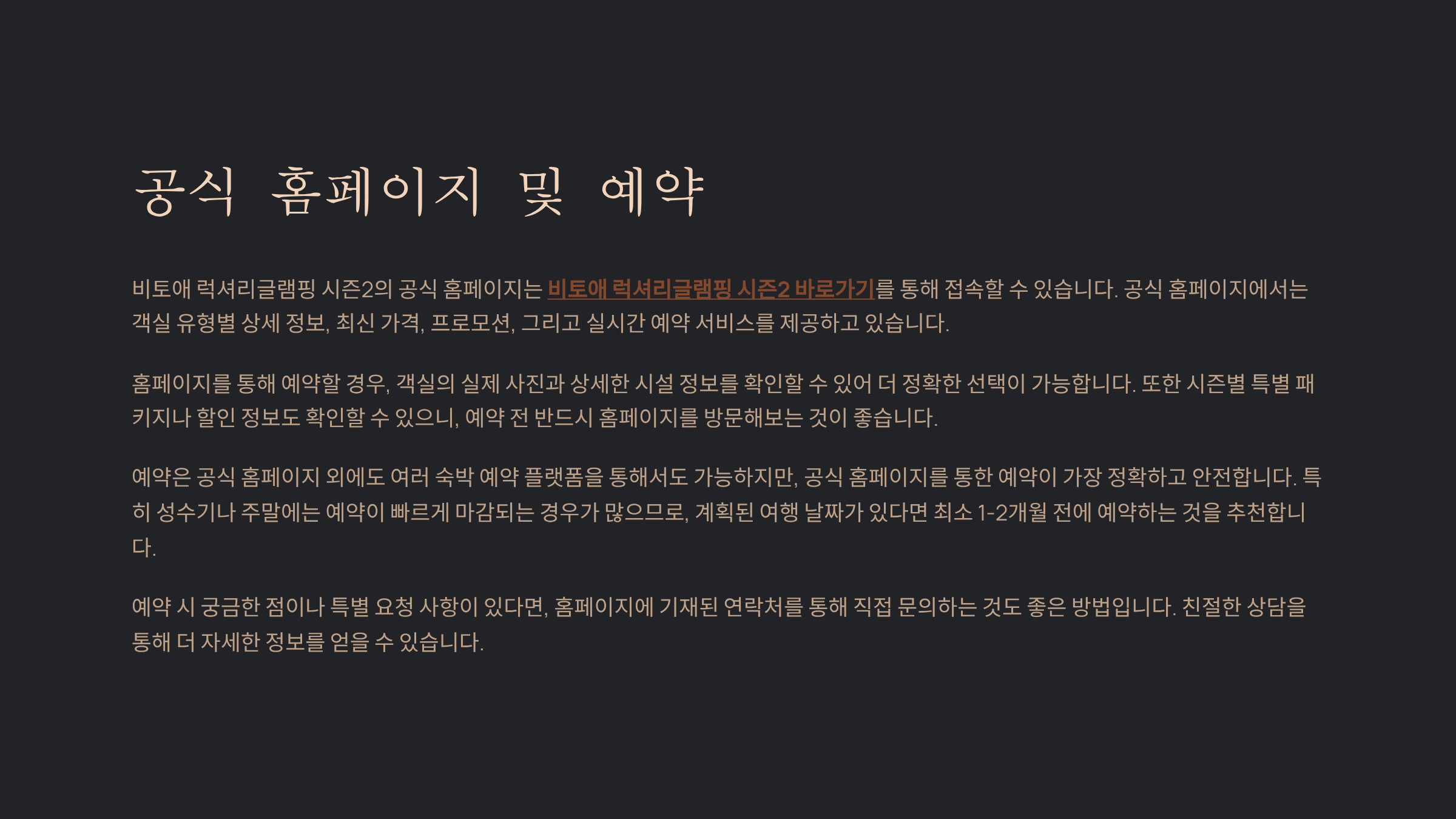 | 홈페이지 | 비토애 럭셔리글램핑 시즌2 바로가기 |