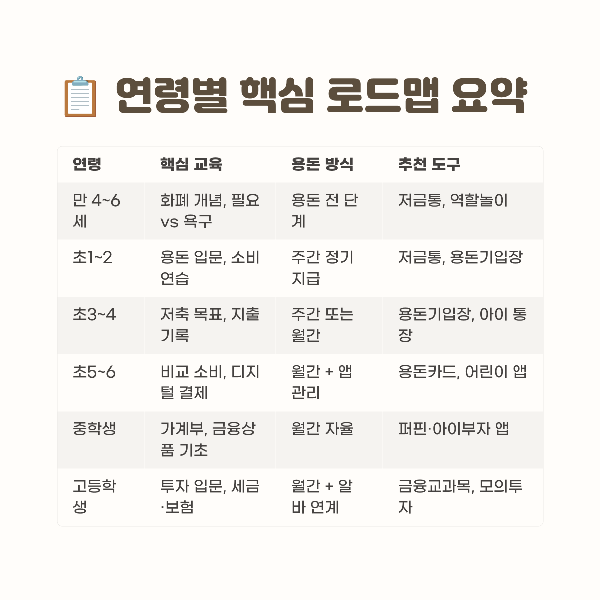 연령 핵심 교육 내용 용돈 방식 추천 도구