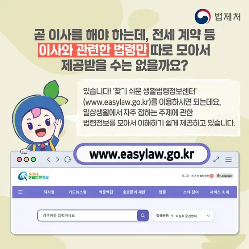 생활 법령 쉽게 찾기: 이사, 출산장려금, 외국인까지 전세계약부터 출산까지, 생활에 꼭 필요한 맞춤형 법령 정보 모음 끝판왕!