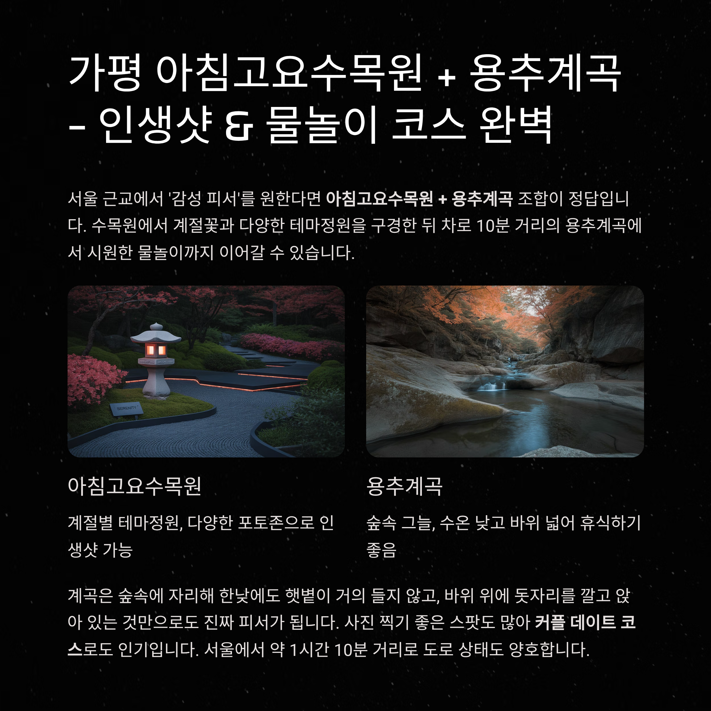 가평 아침고요수목원 + 용추계곡 – 인생샷 & 물놀이 코스 완벽