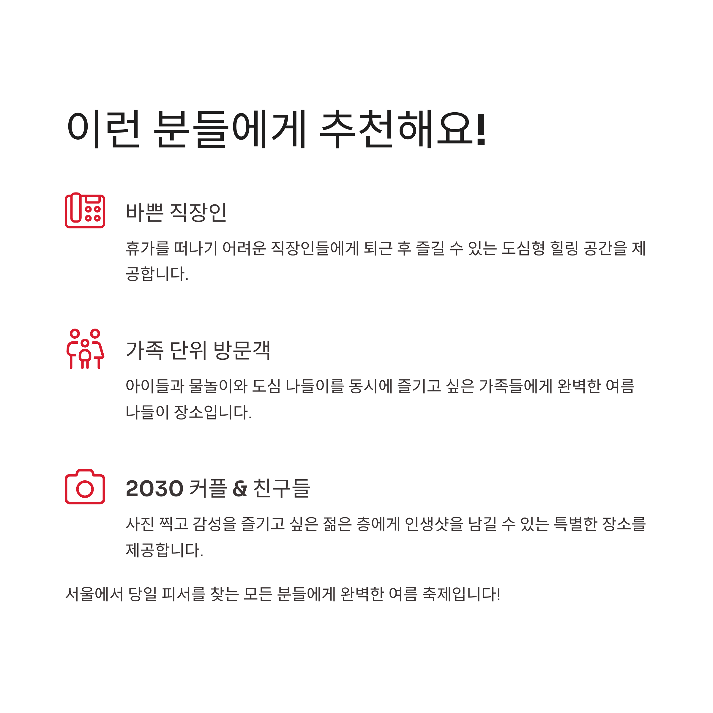 데이트, 가족 피서, 친구들과의 인생샷까지 모두 만족시킬 수 있는