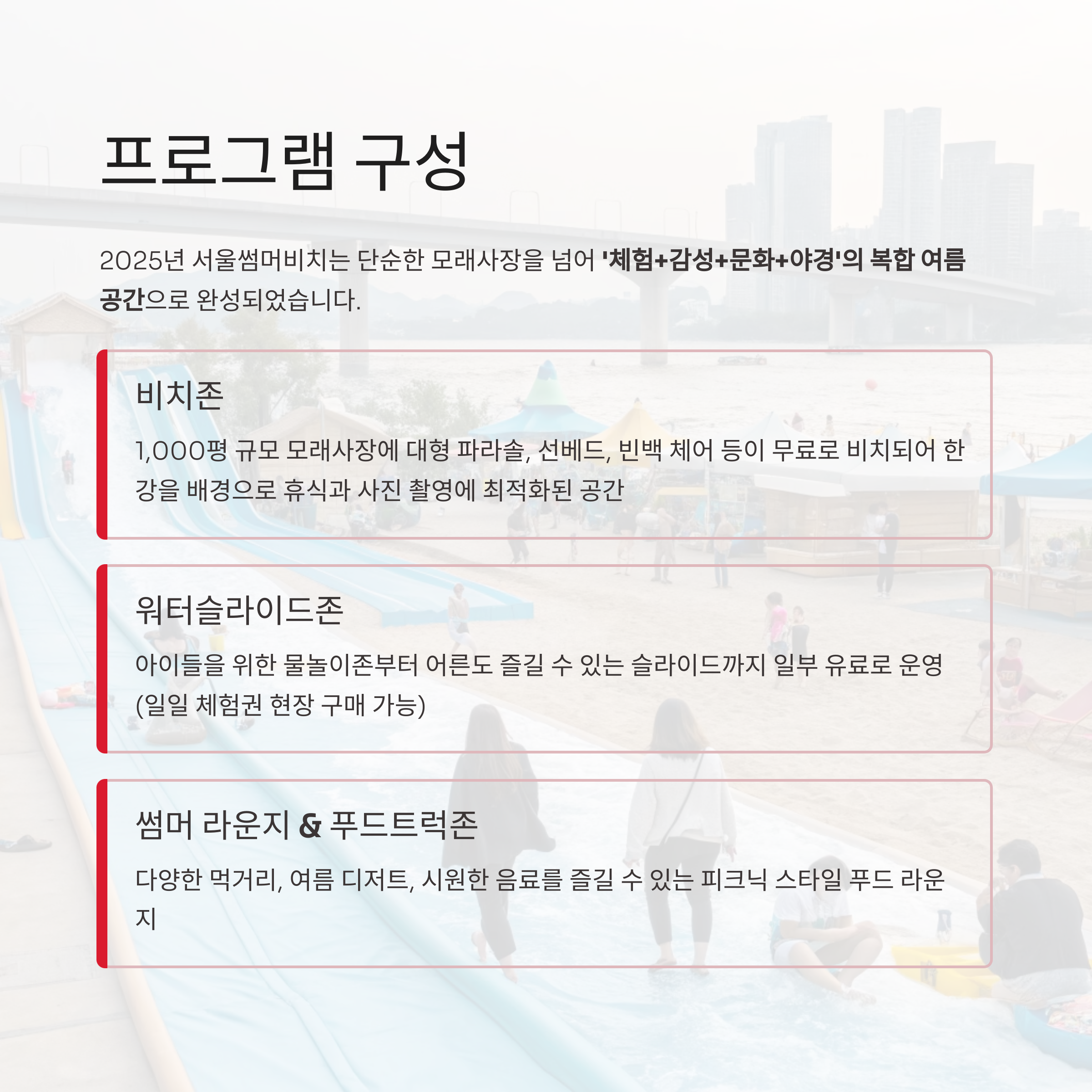 ‘체험+감성+문화+야경’의 복합 여름 공간으로 완성되었습니다.