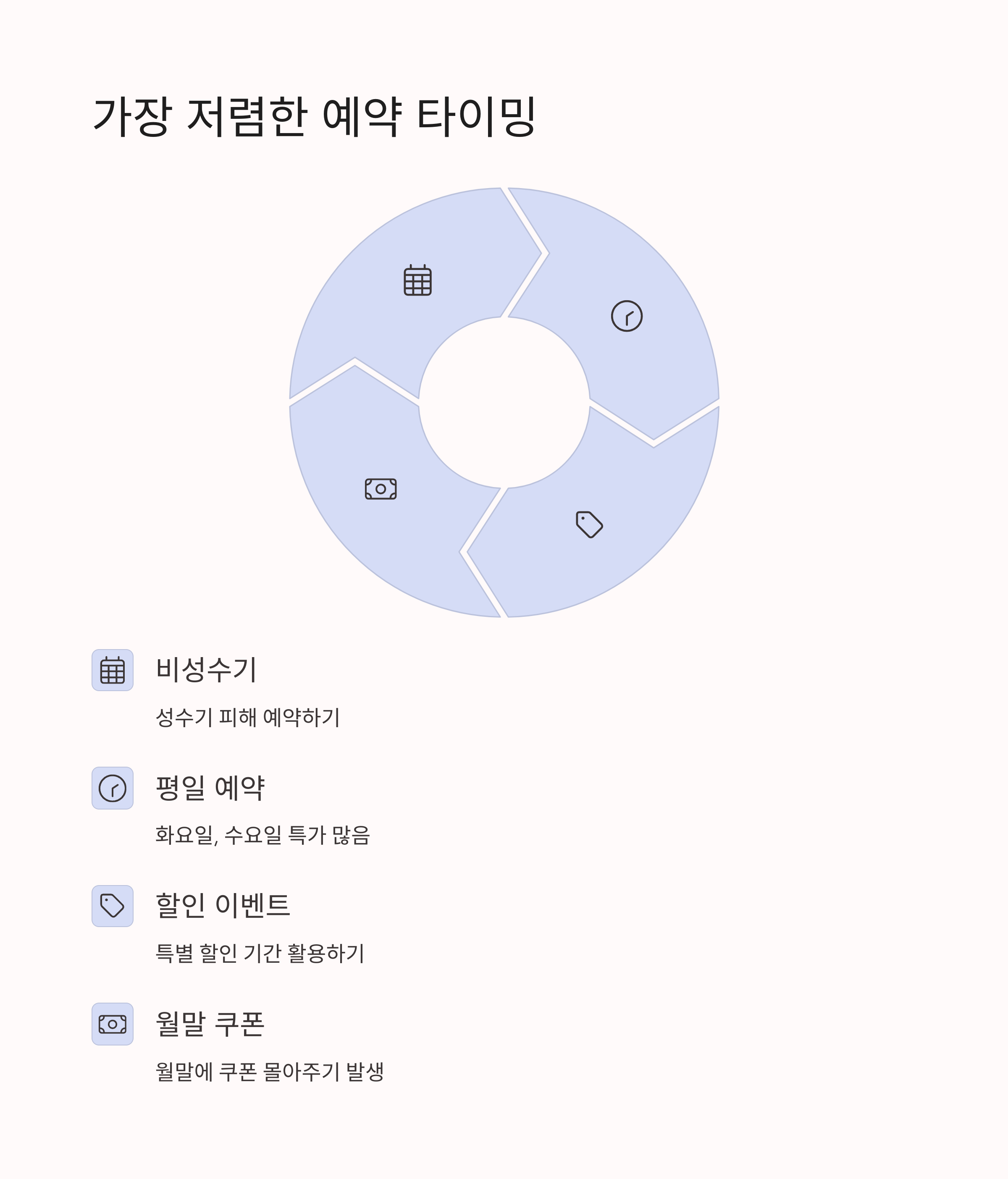 이 글에서는 할인 시즌이 집중되는 시기와 그 시기에 예약해야 하는 이유를 핵심 위주로 안내드립니다.