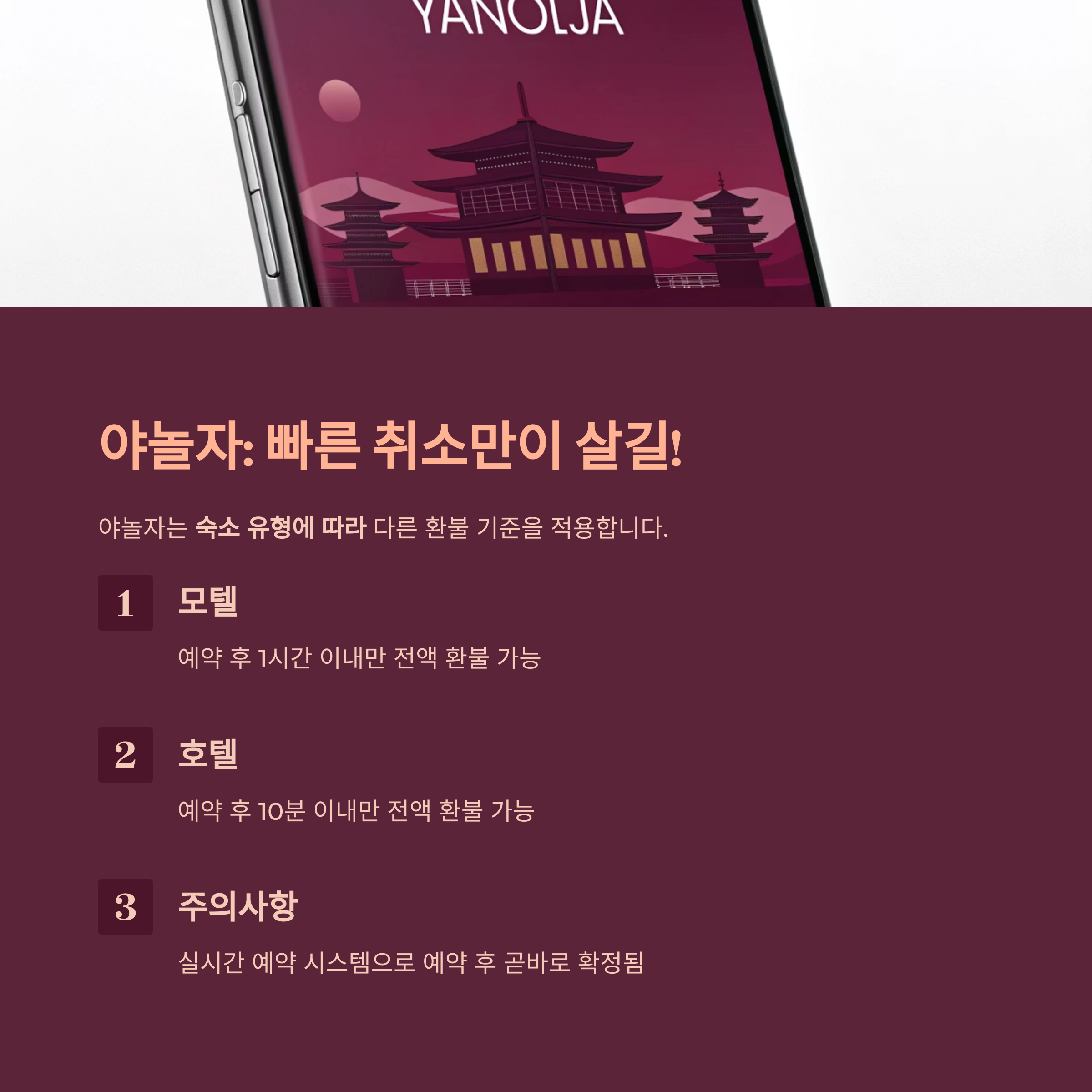 • 야놀자: 예약 직후 짧은 시간 안에만 전액 환불 가능, 실시간 예약에 주의