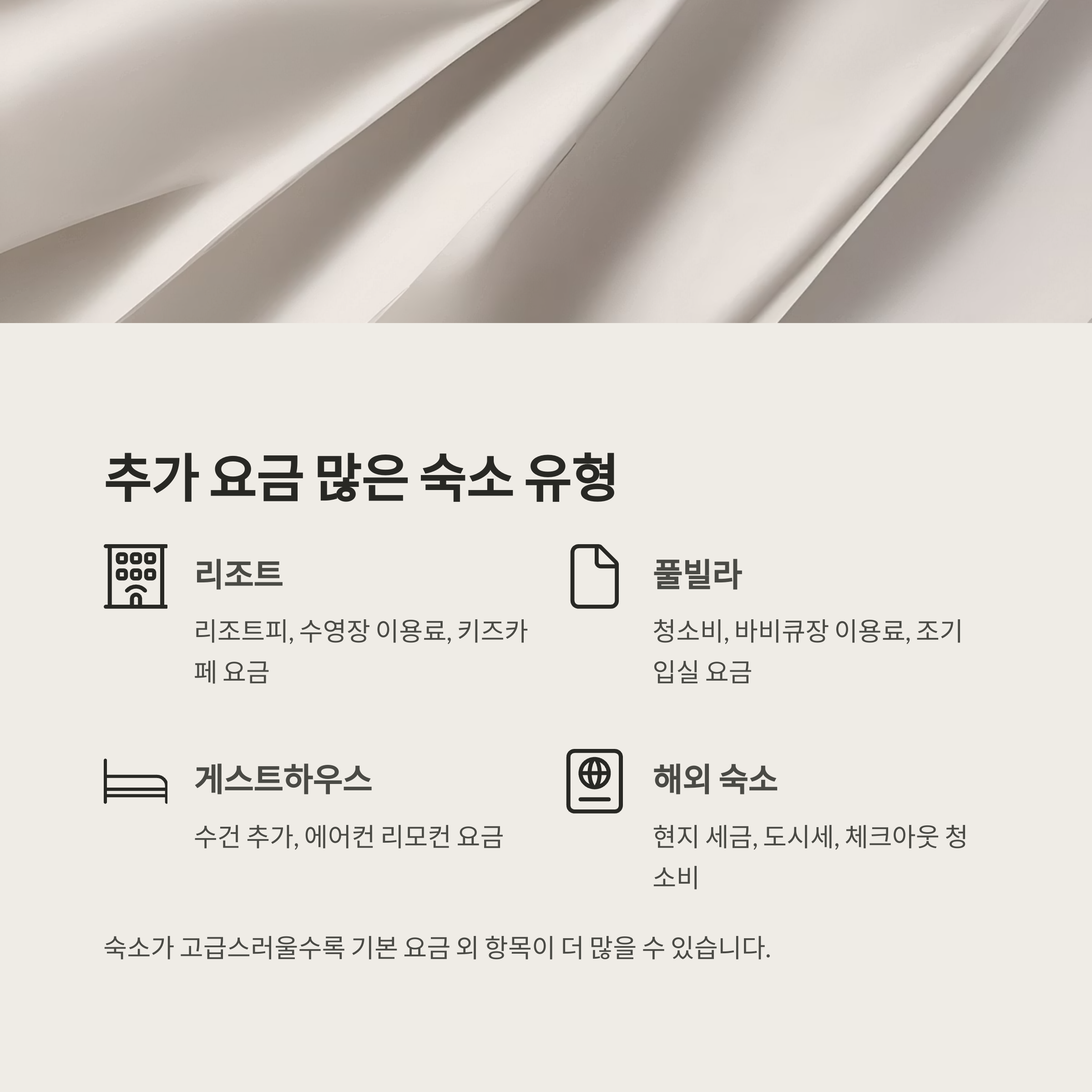숙소 유형에 따라 ‘추가 요금’이 발생할 가능성이 높아지는 경우가 있습니다.