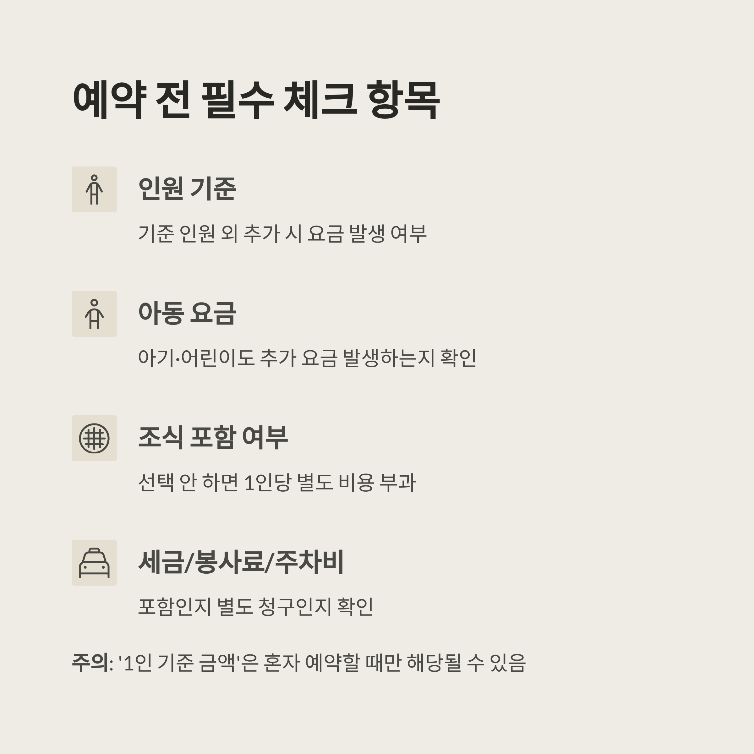 이번 글에서는 숙소에서 추가 요금 없이 정확한 금액으로 예약하는 팁을
