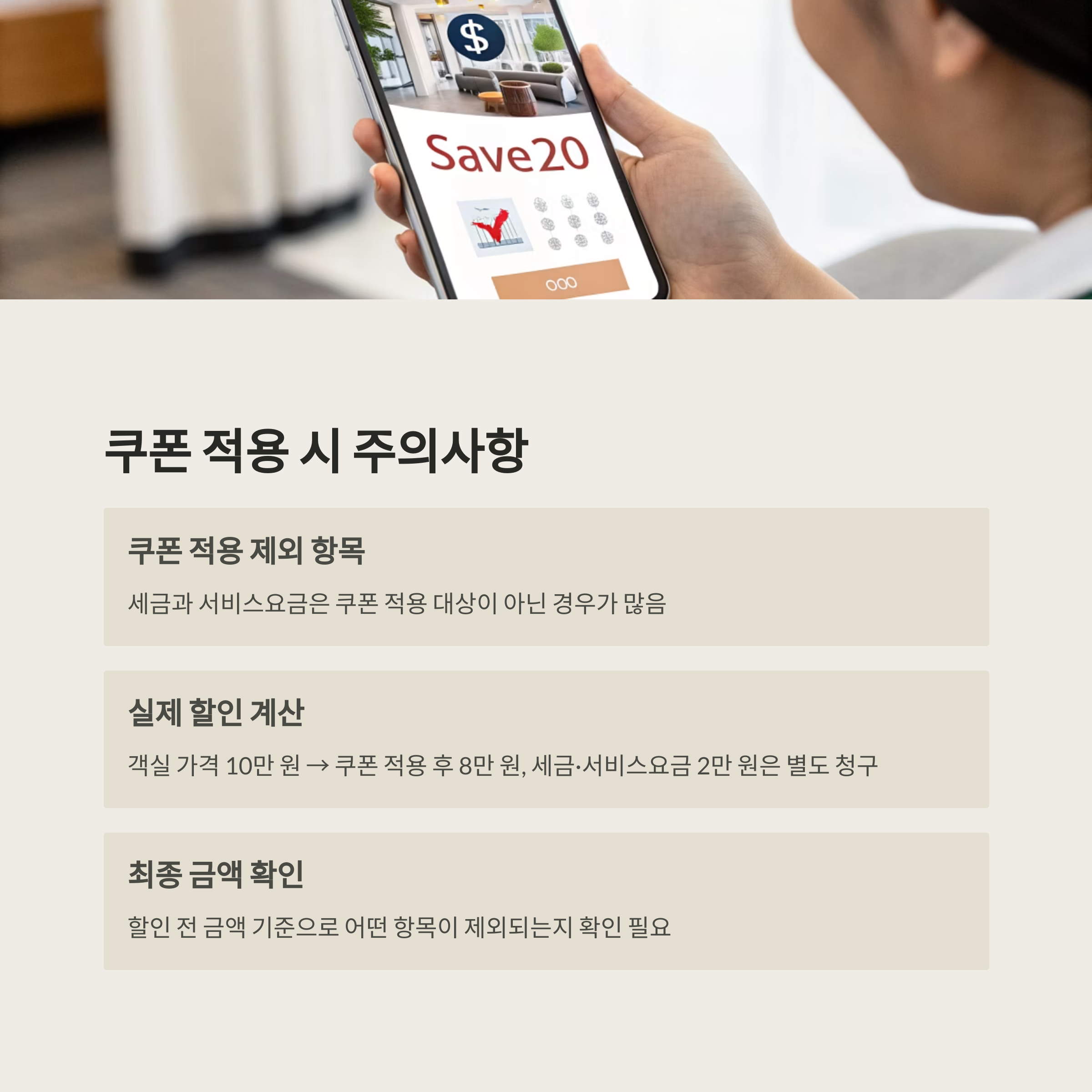 쿠폰 적용 시 주의 – 일부 할인은 세금·추가비 제외