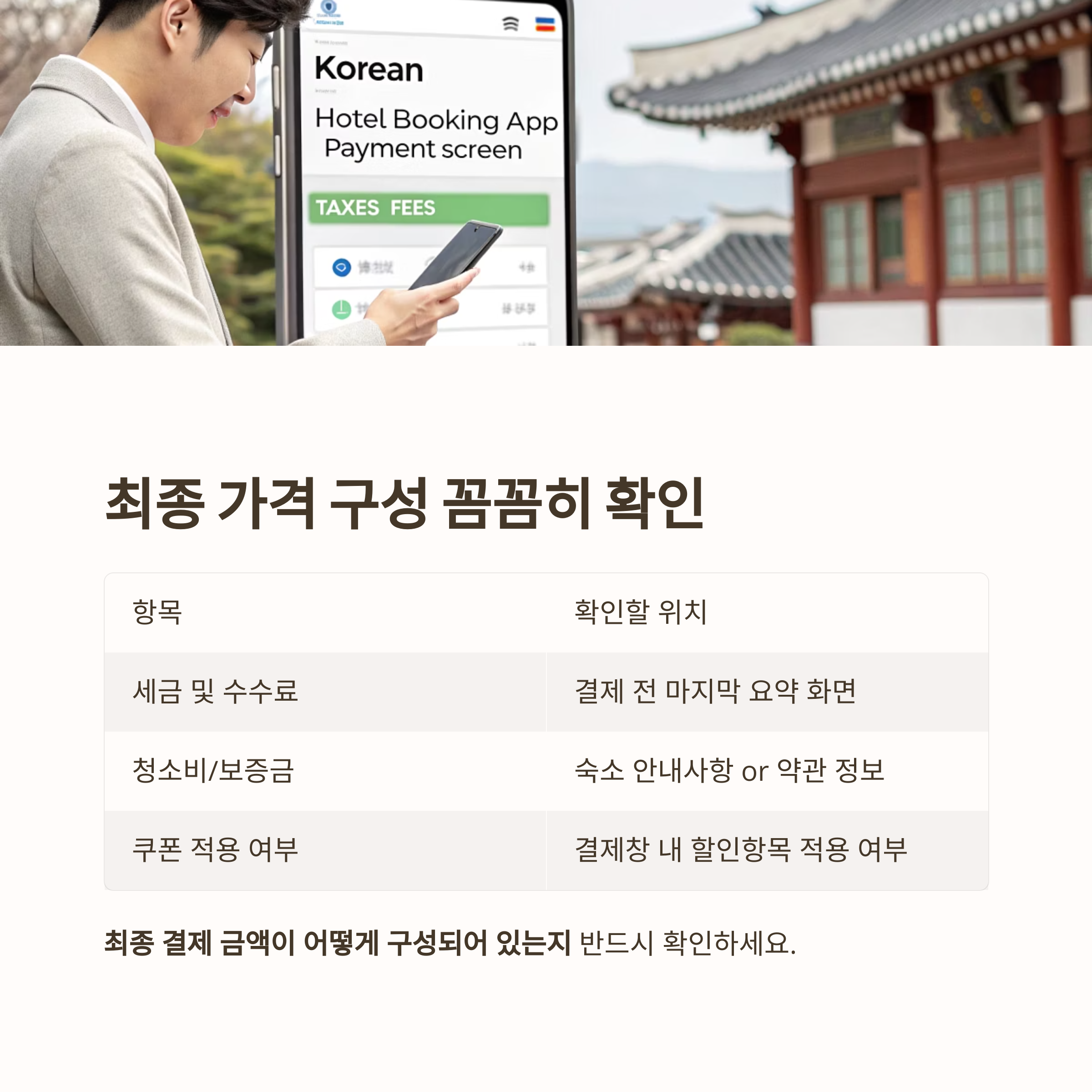 예약을 완료하기 전, 반드시 최종 결제 금액이 어떻게 구성되어 있는지 확인하세요.