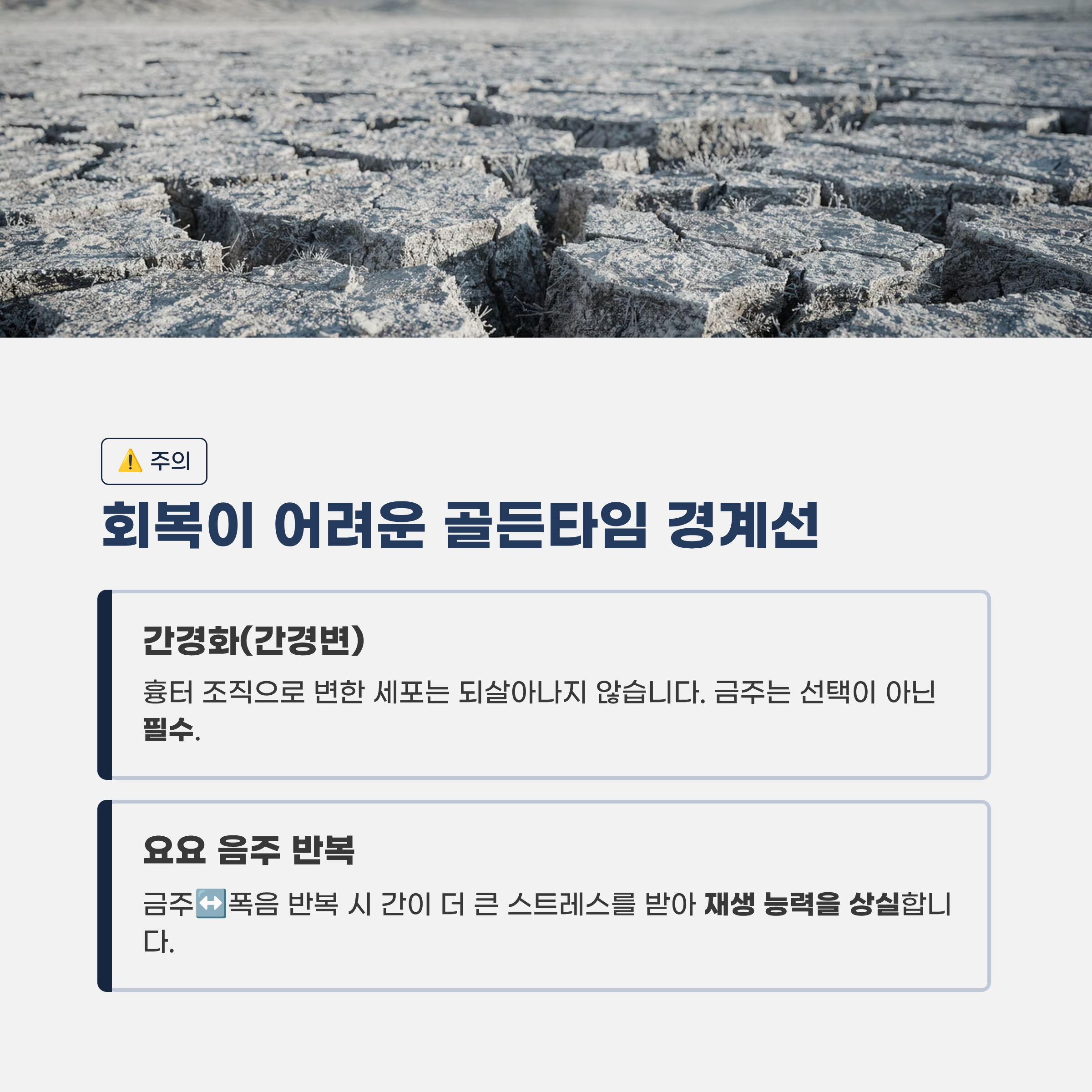 간은 재생 능력이 좋지만, **'비가역적 지점(되돌릴 수 없는 지점)'**을 넘어서면 이야기가 달라집니다.