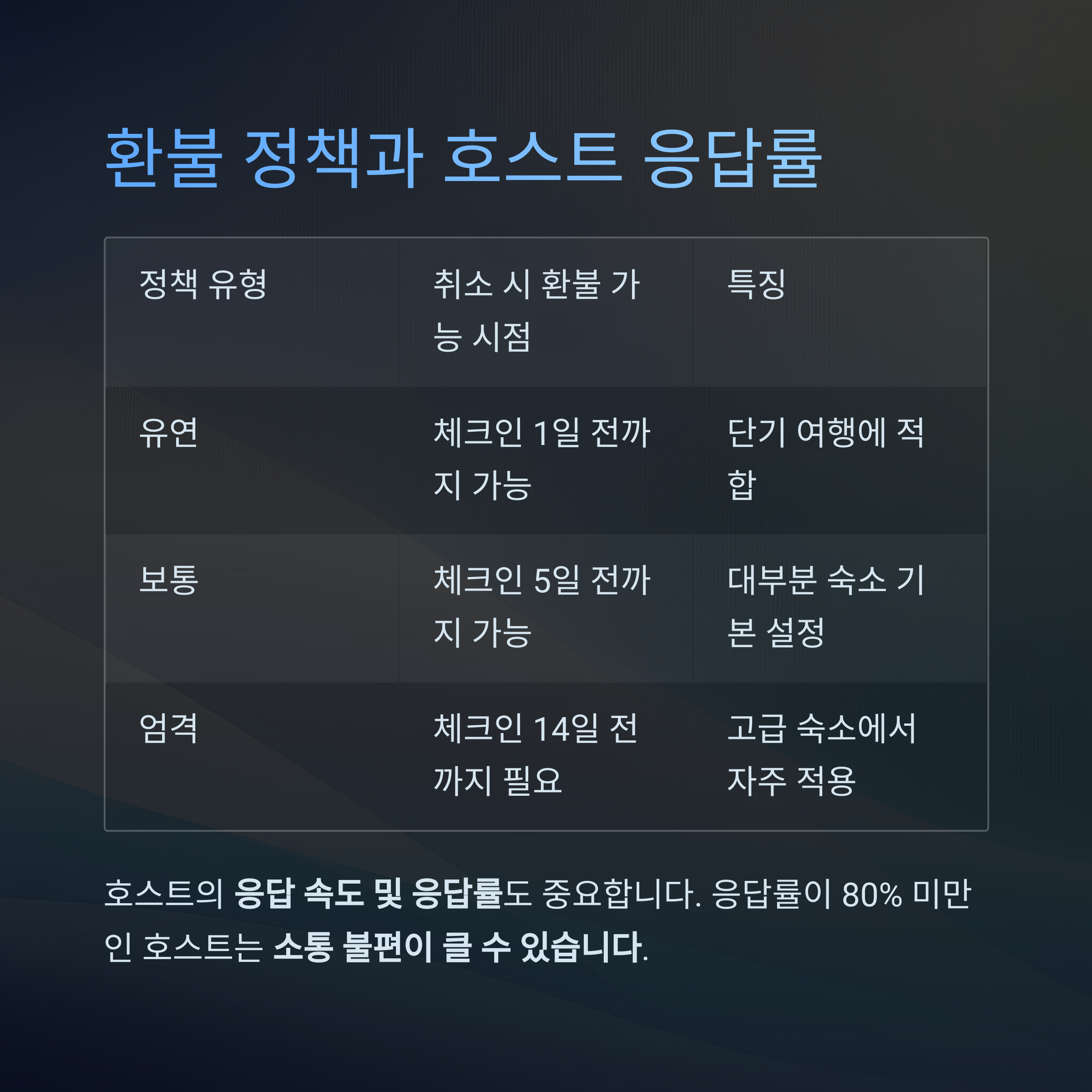 또한 호스트의 응답 속도 및 응답률도 중요합니다.