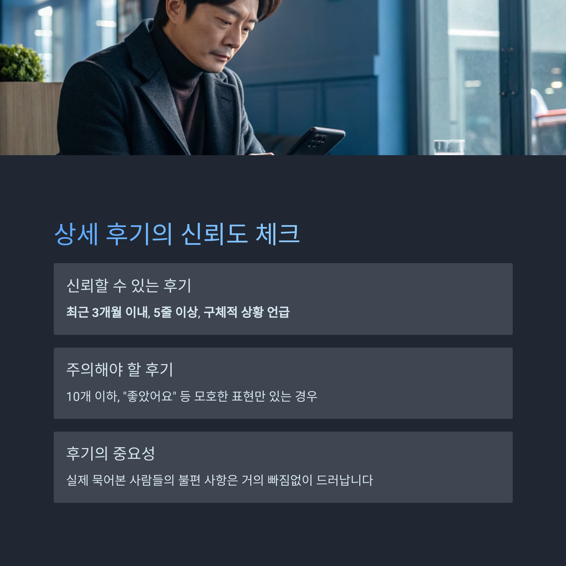 특히 최근 3개월 이내 후기, 5줄 이상 후기, 구체적 상황 언급이 포함된 리뷰는 신뢰할 수 있습니다.