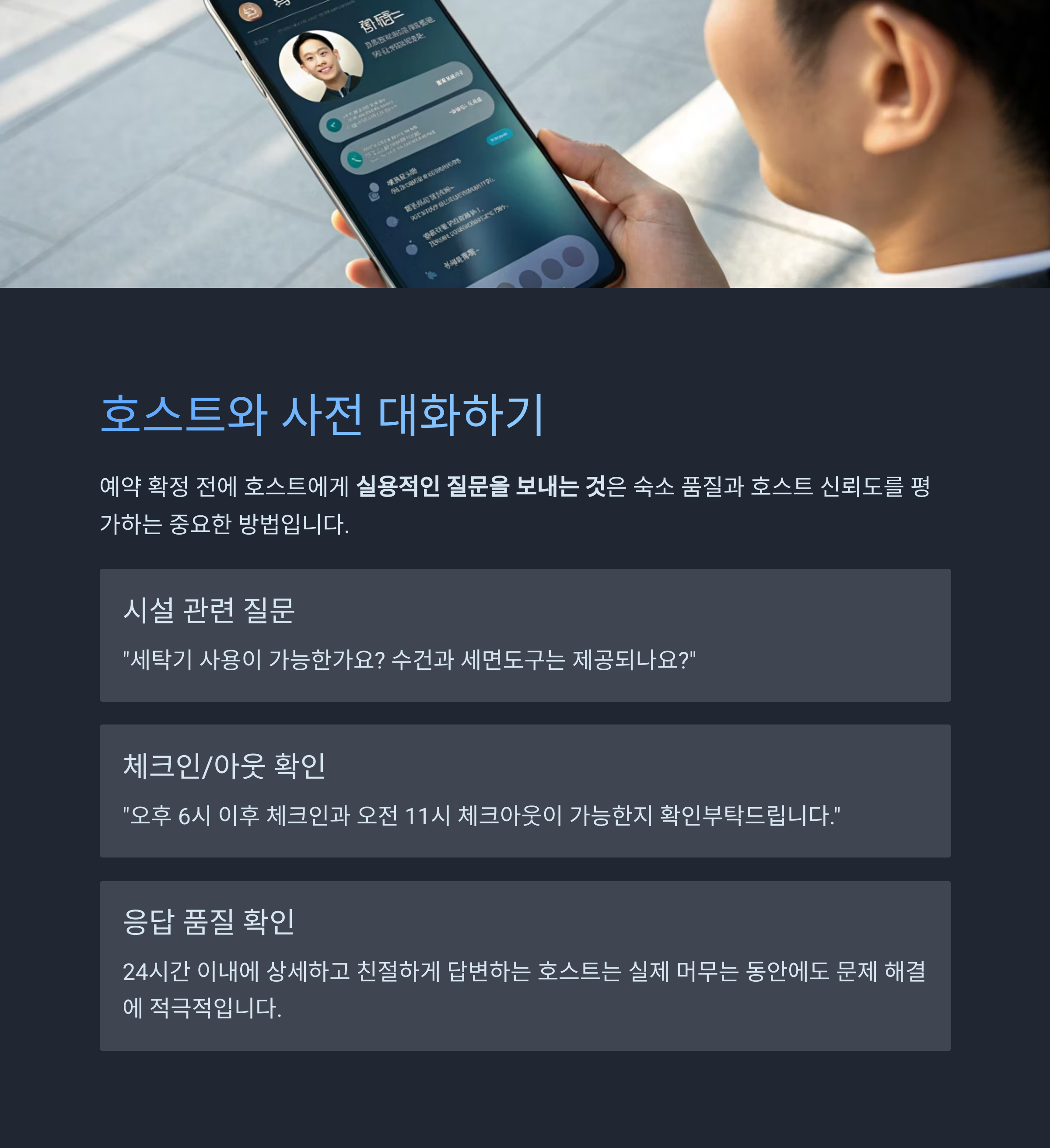 예약 확정 전에 호스트에게 간단한 질문을 보내보는 것은 유용합니다.