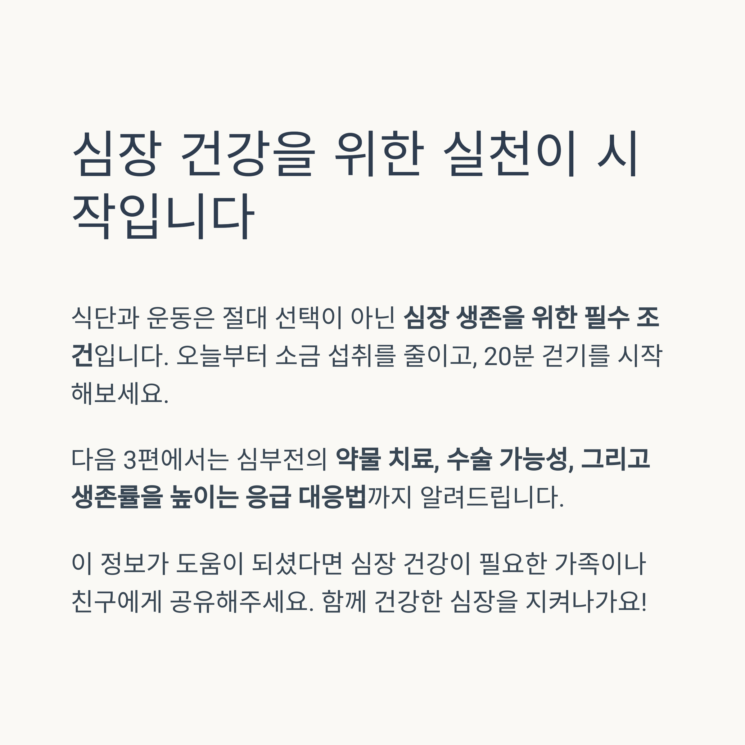 다음 글 예고: 심부전 3편 – 치료 방법과 생존 전략