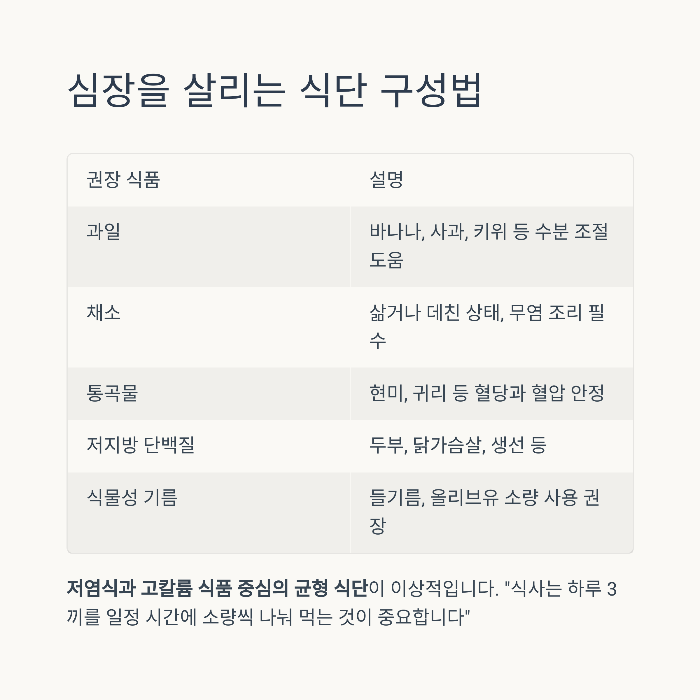 이번 2편에서는 심장을 보호하는 실질적인 식단 가이드와