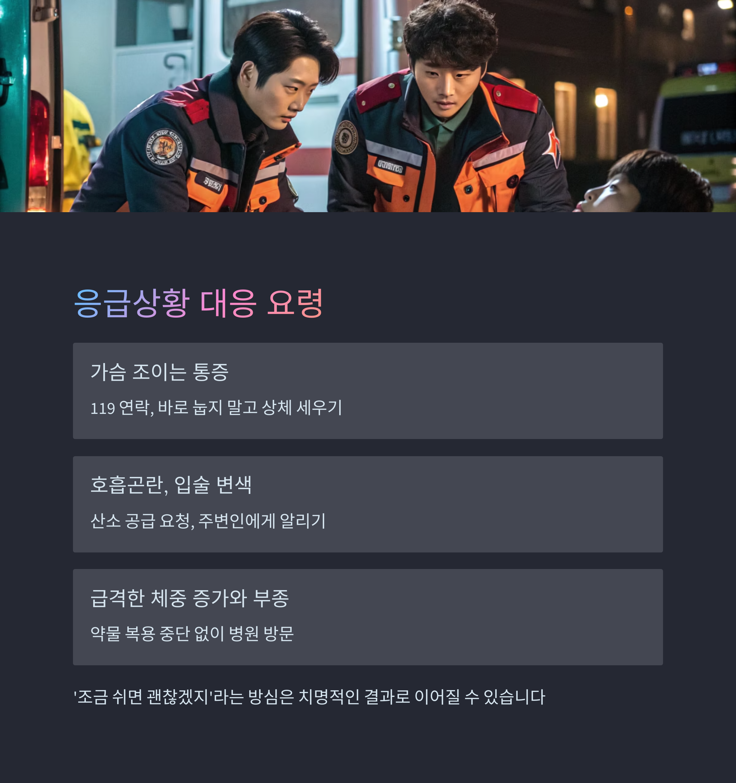 진단 후에도 정확한 치료 전략과 응급 대응 요령이 생존을 좌우합니다.
