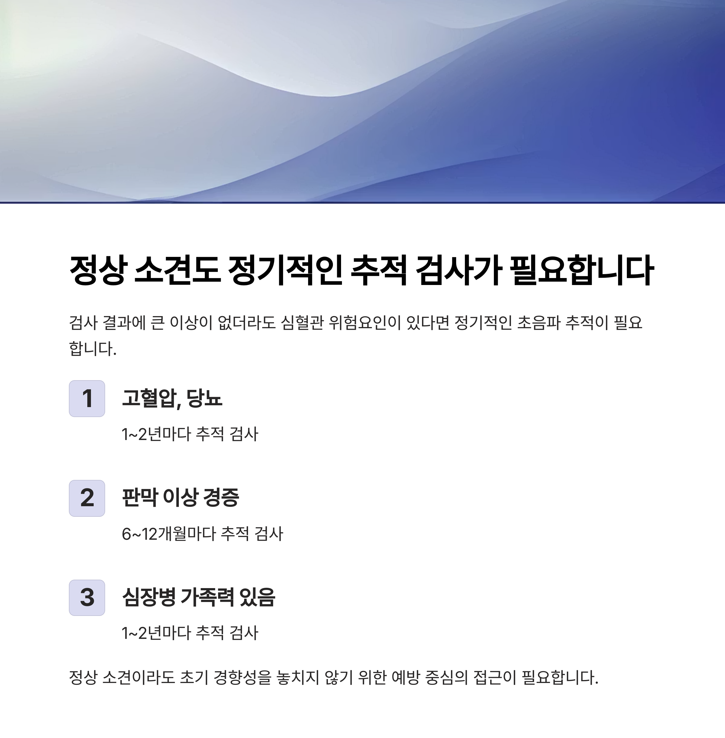 심혈관 위험요인이 있다면 정기적인 초음파 추적이 필요합니다.