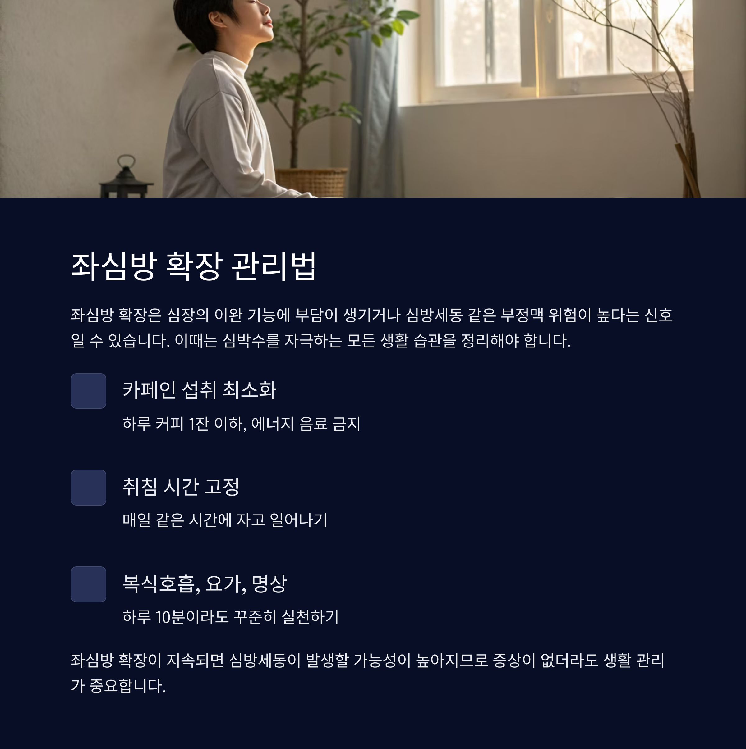 좌심방 확장이 있다면? 수면, 스트레스 관리에 집중하세요