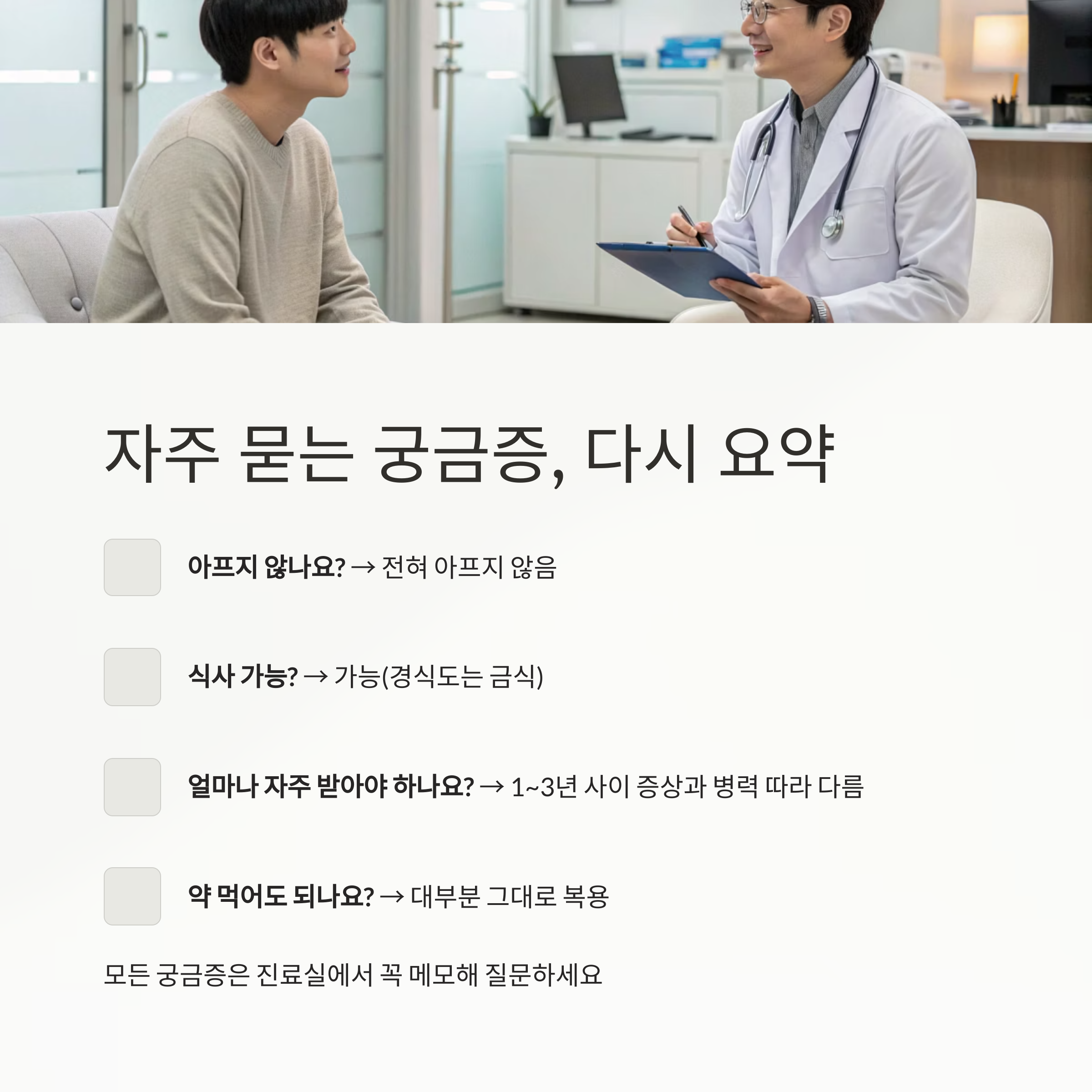• 얼마나 자주 받아야 하나요? → 1~3년 사이 증상과 병력 따라 다름