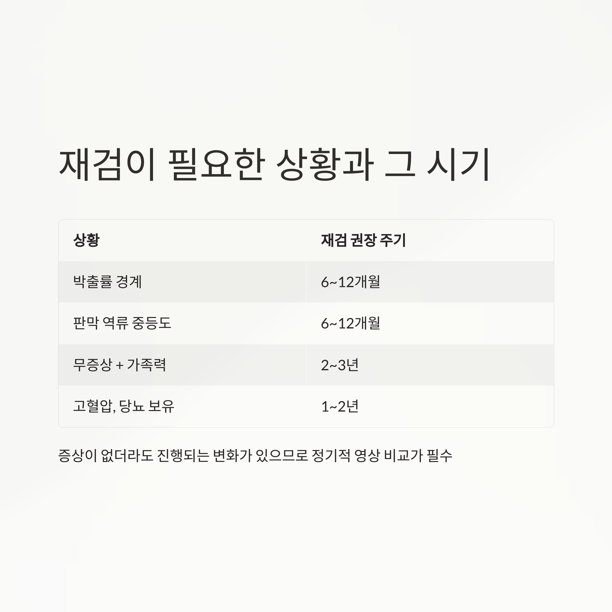 증상이 없더라도 진행되는 변화가 있으므로 정기적 영상 비교가 필수