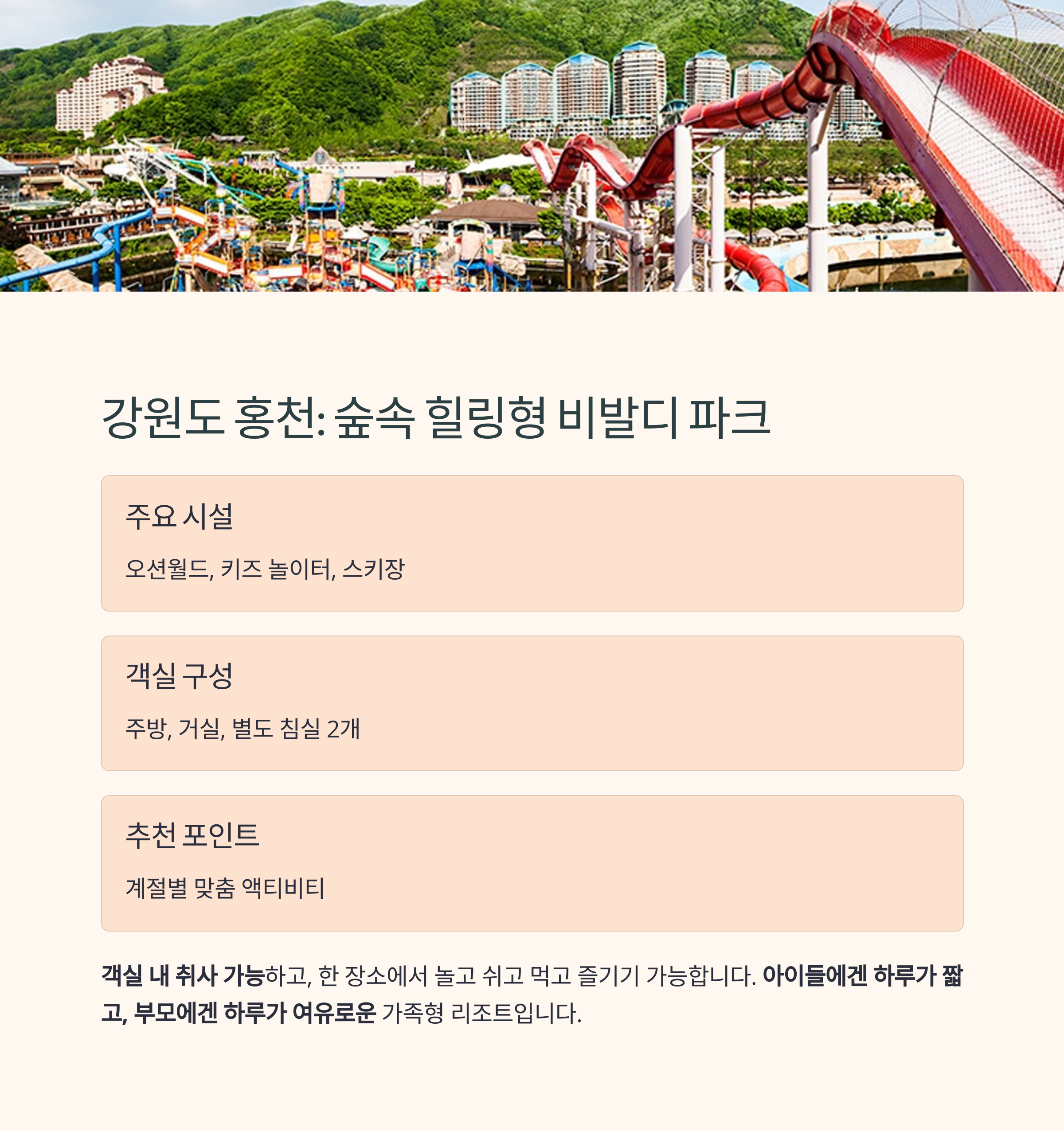 1. 강원도 홍천: 숲속 힐링형 ‘비발디 파크 스위트 콘도’