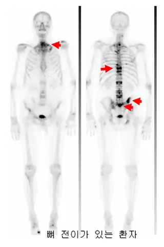 - 폐암이 뼈로 전이되었는지 확인하기 위해 시행되며, 방사성 동위원소를 주입하여 뼈에 축적되는 방사선을 감지해 전이 여부를 진단합니다. 뼈 전이는 폐암 환자에게서 흔히 발생하며, 이를 조기에 발견하는 것이 중요합니다.