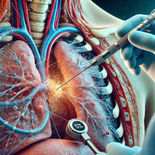 - 경피 바늘 조직검사는 CT나 초음파를 이용해 폐에 바늘을 삽입하여 조직을 채취하는 방법으로, 주로 폐의 중심부에 위치한 종양을 확인하는 데 사용됩니다. 이 검사는 진단 정확도를 높이는 데 중요합니다.