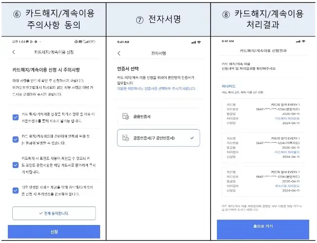 - 조회한 카드는 바로 해지시키거나 계속해서 이용할 수 있습니다.