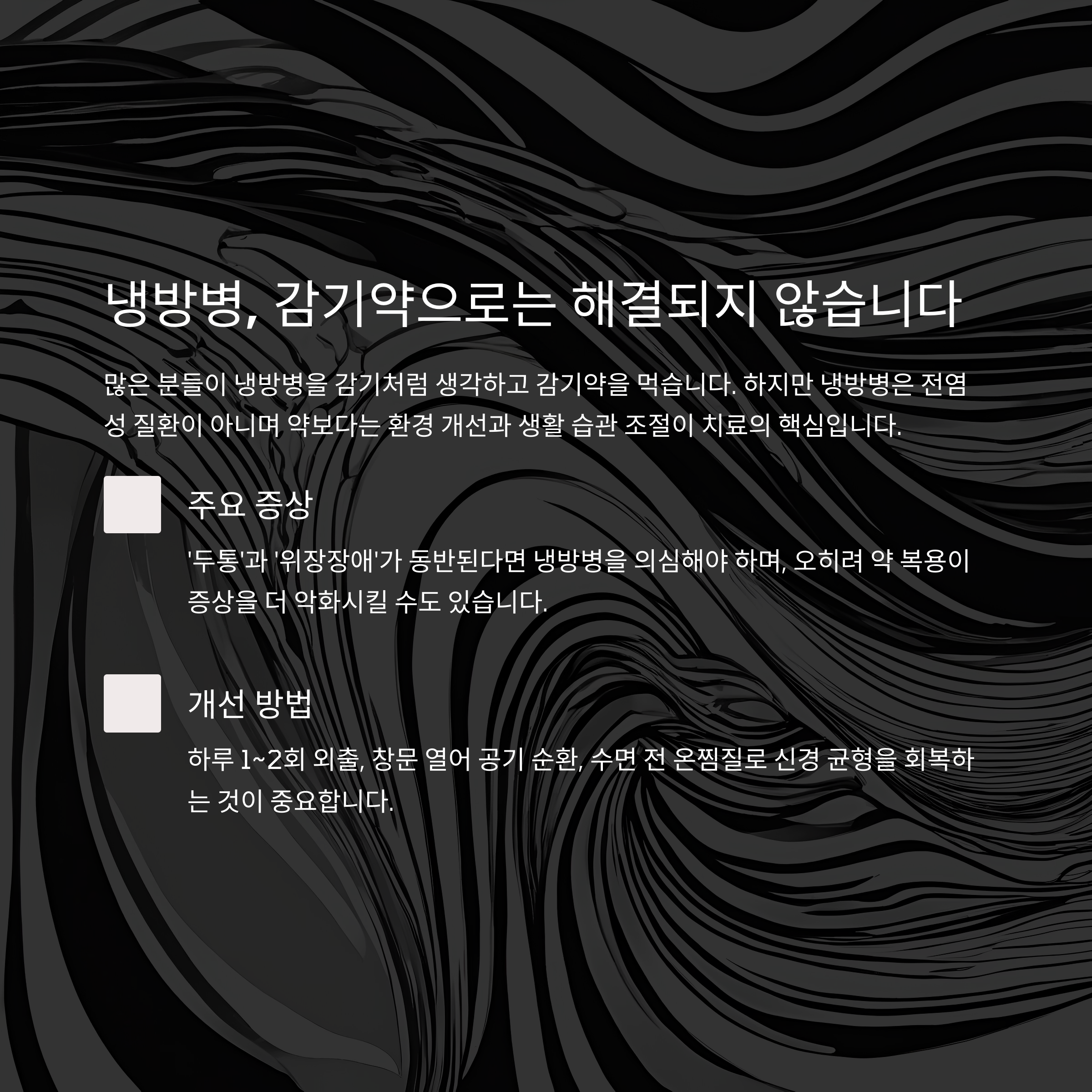 냉방병은 감기처럼 먹고 쉬면 낫는 병이 아닙니다