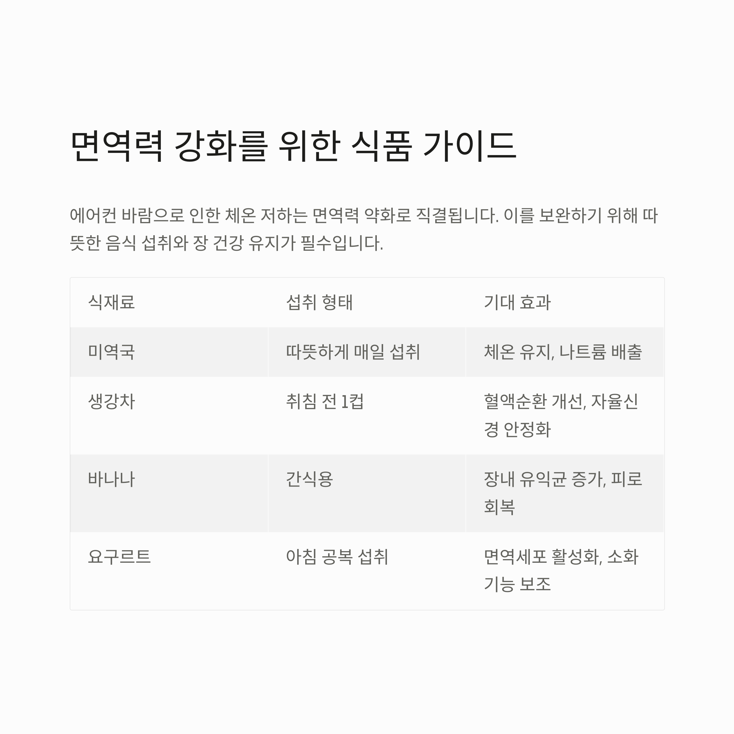 다음은 여름철에 효과적인 면역 강화 식품입니다.