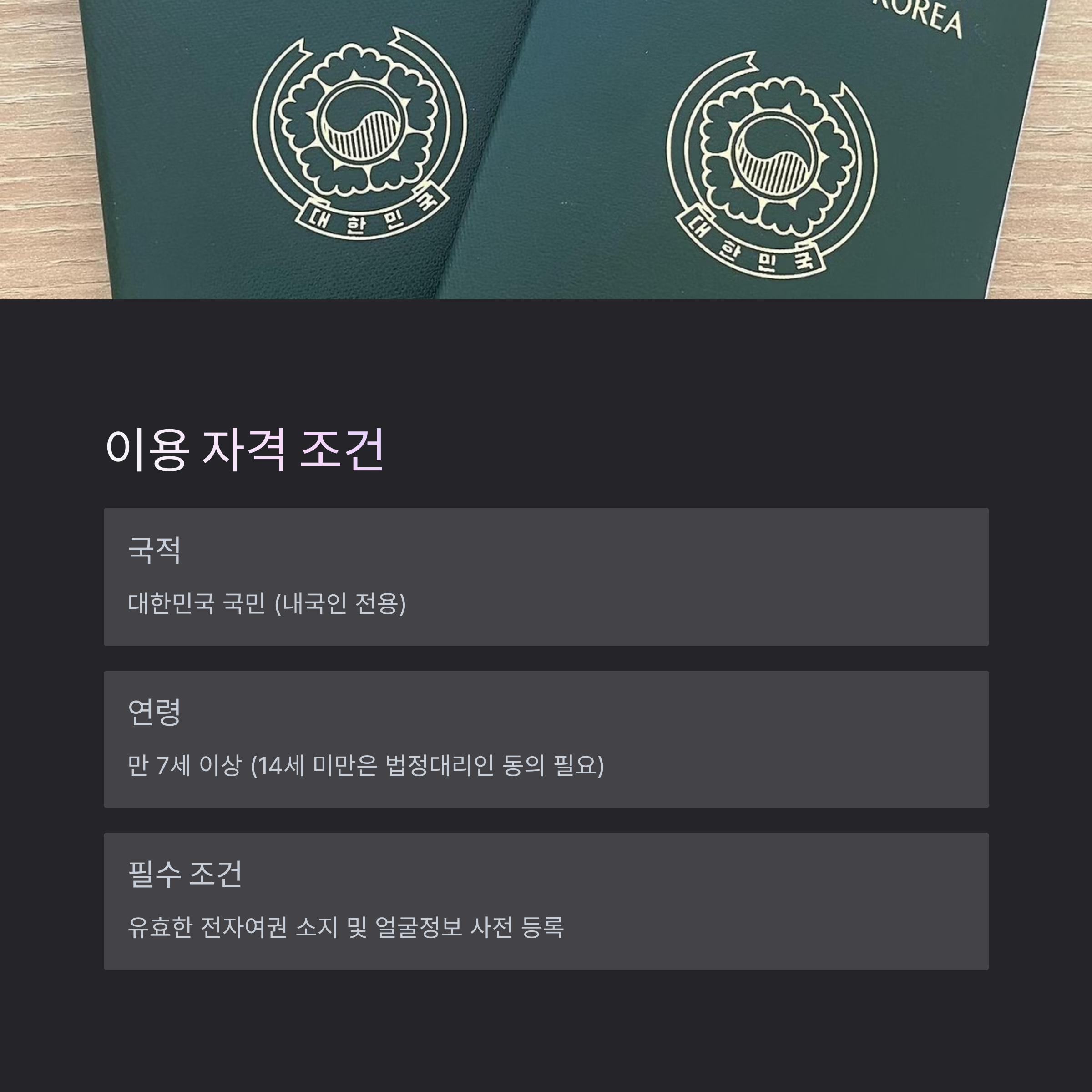 | 3단계 | 자동 문 열림 → 출국장 통과 |