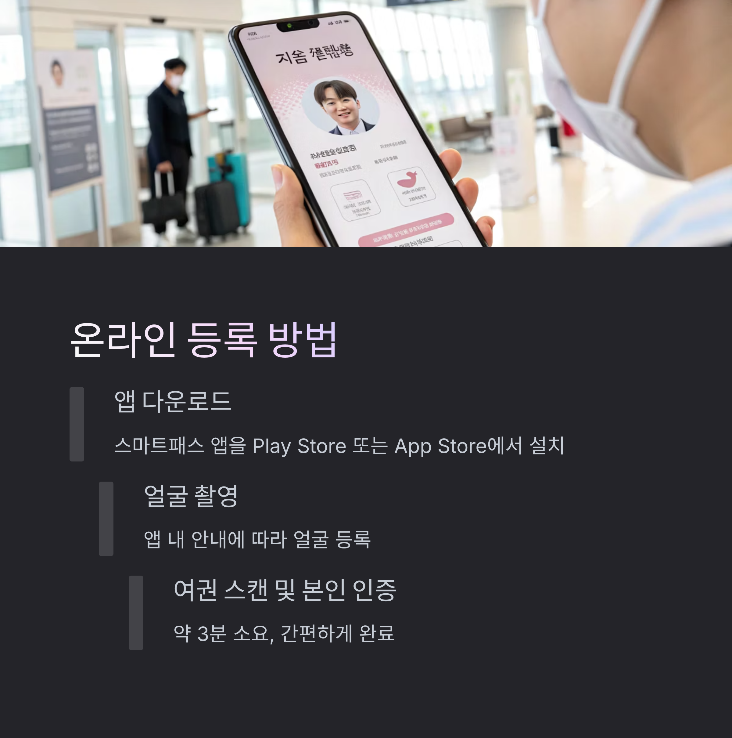 | 모바일 등록 | 스마트패스 앱(Play Store / App Store) | 약 3분 |