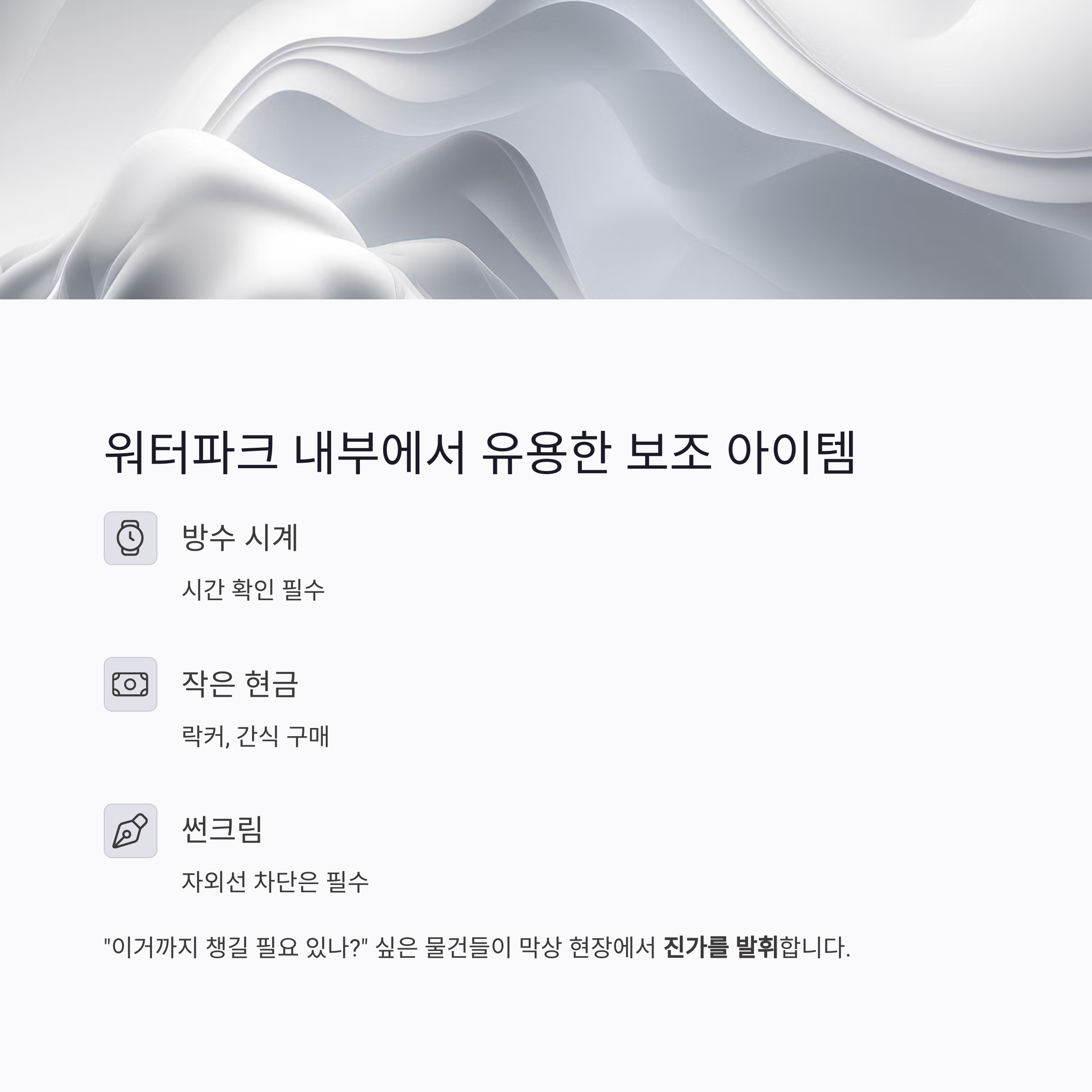 워터파크 내부에서 유용한 보조 아이템