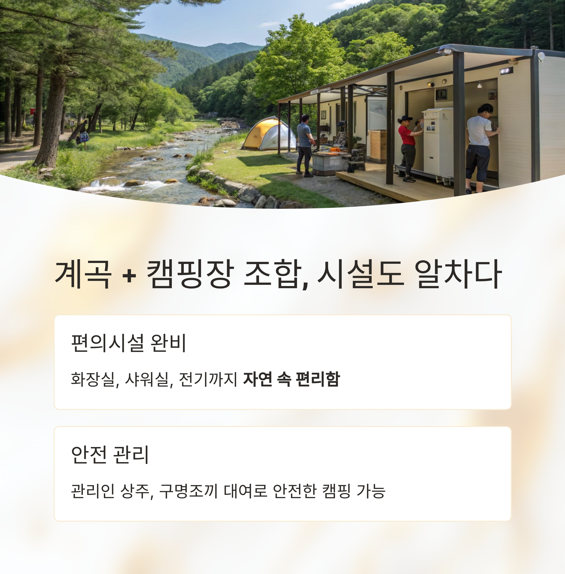 최근 인기 계곡 캠핑장들은 화장실, 샤워실, 전기까지 완비되어