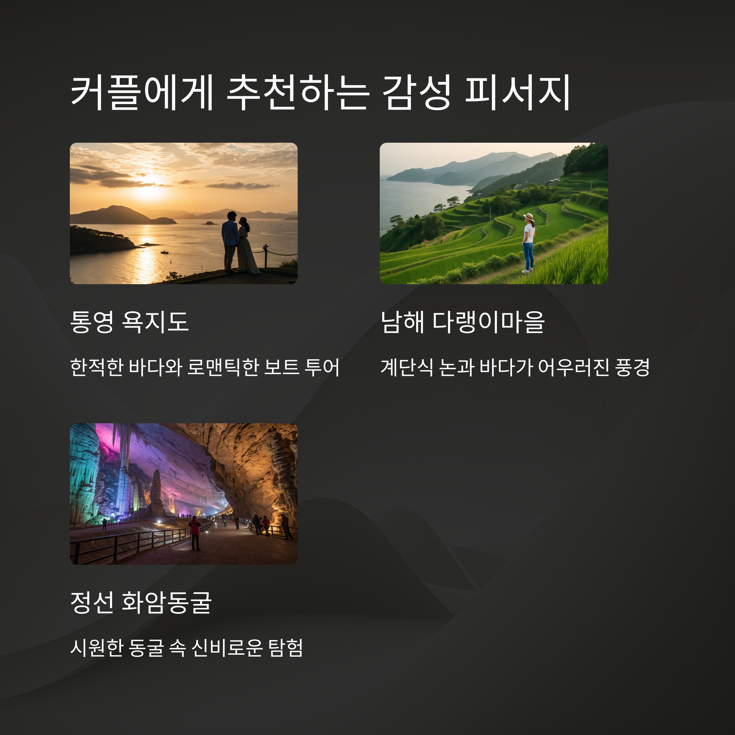 통영 욕지도, 남해 다랭이마을, 정선 화암동굴 같은