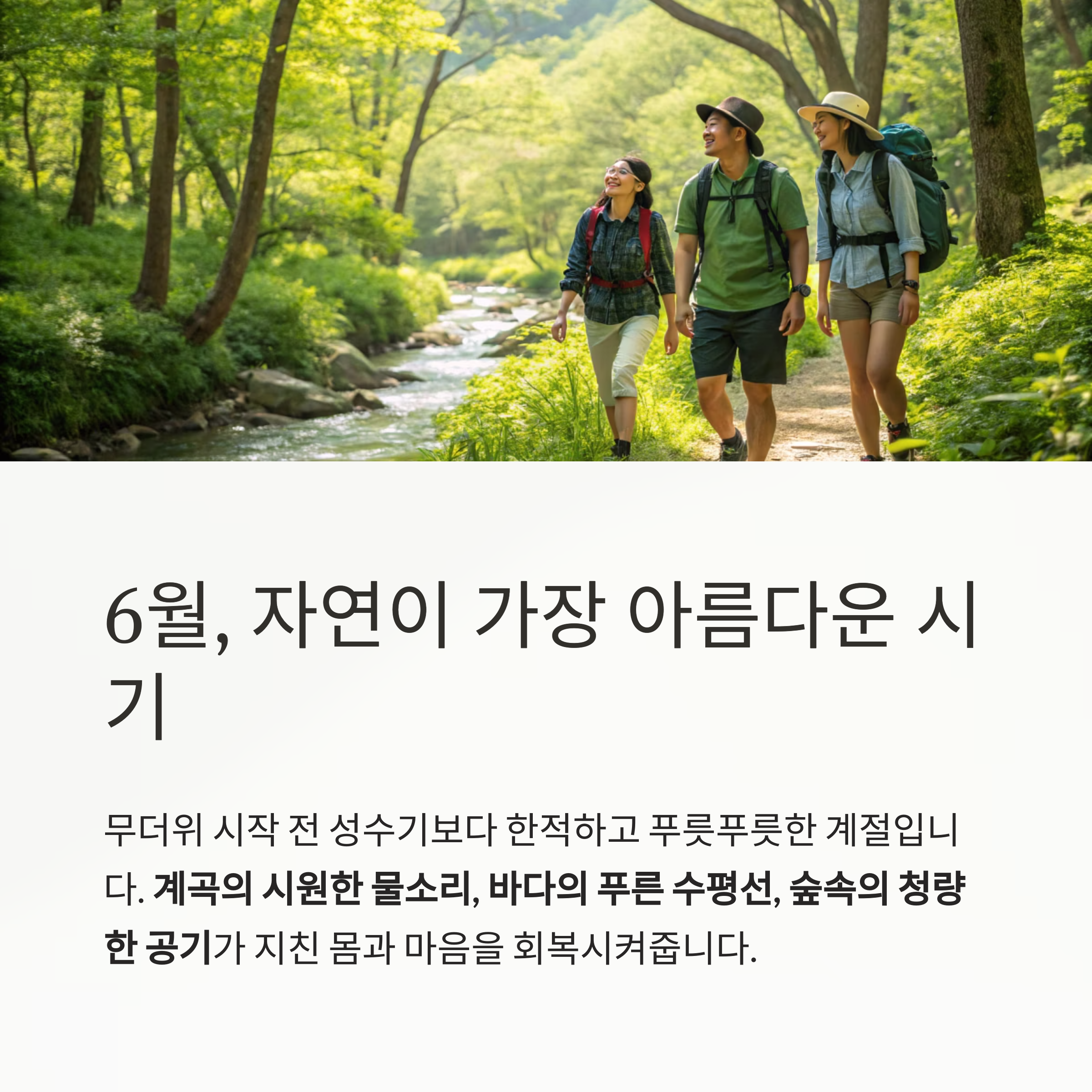 계곡, 바다, 숲속까지! 6월에 딱 맞는 자연 속 힐링 여행지