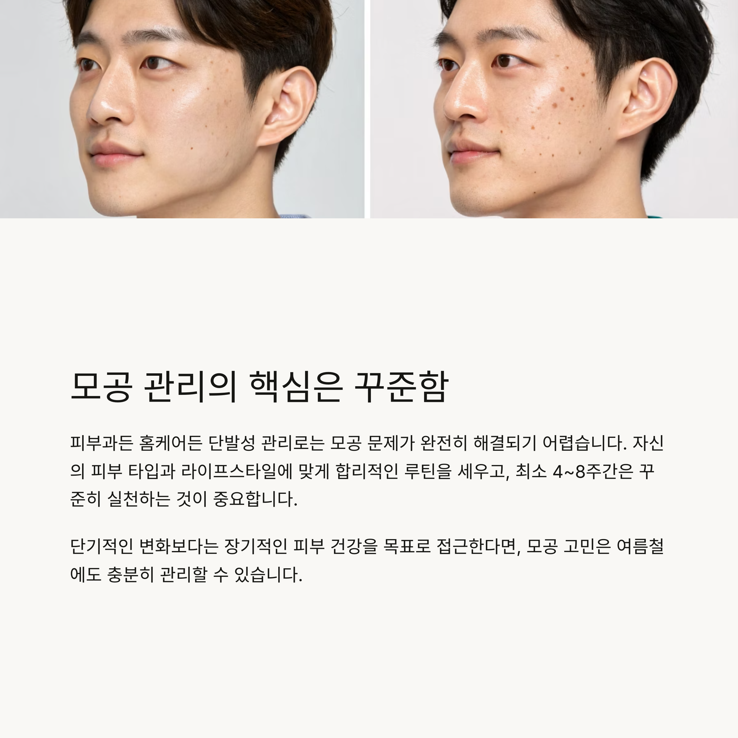 피부과든 홈케어든 단발성 관리로는 모공 문제가 완전히 해결되기 어렵습니다.