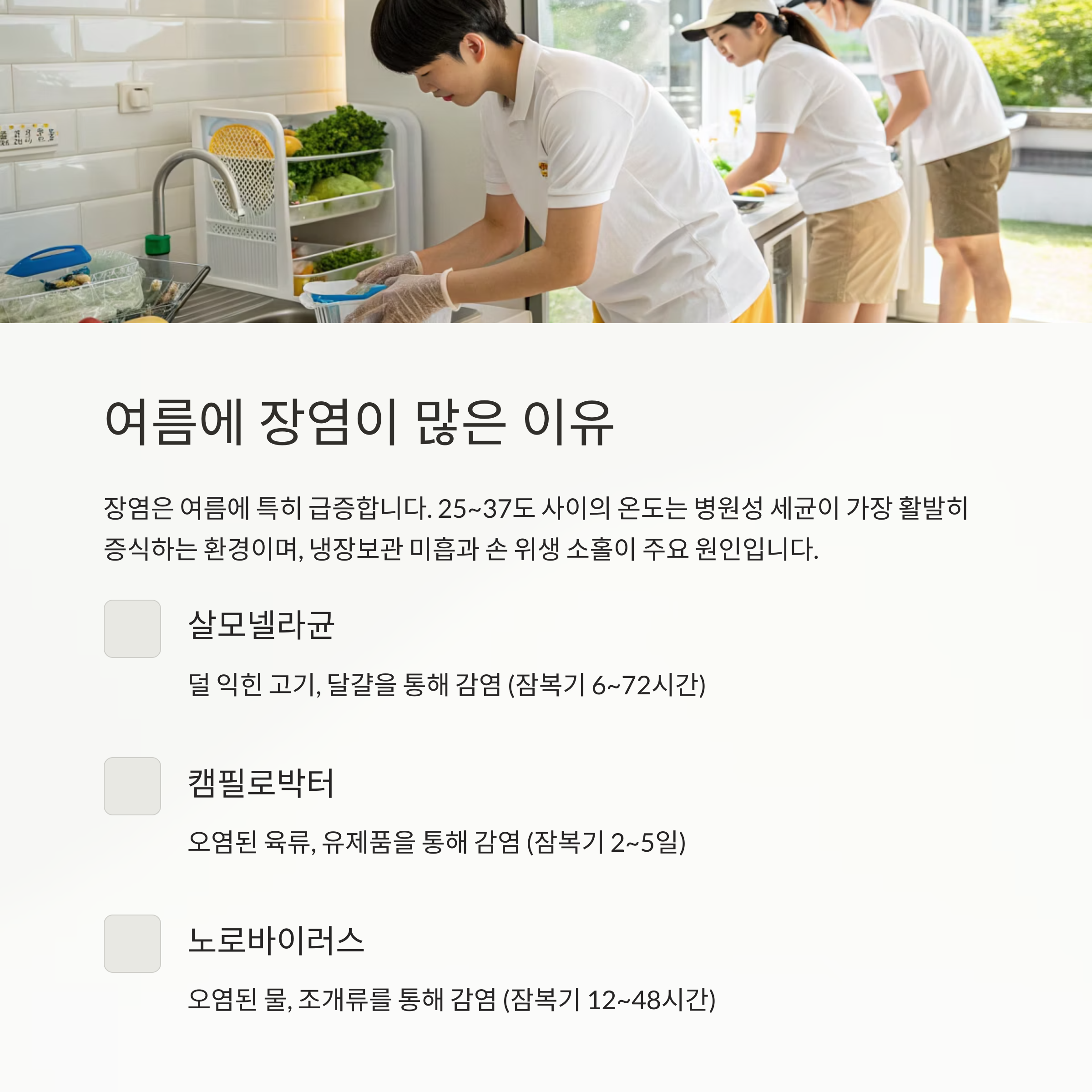 장염 예방을 위한 여름철 생활 수칙 요약