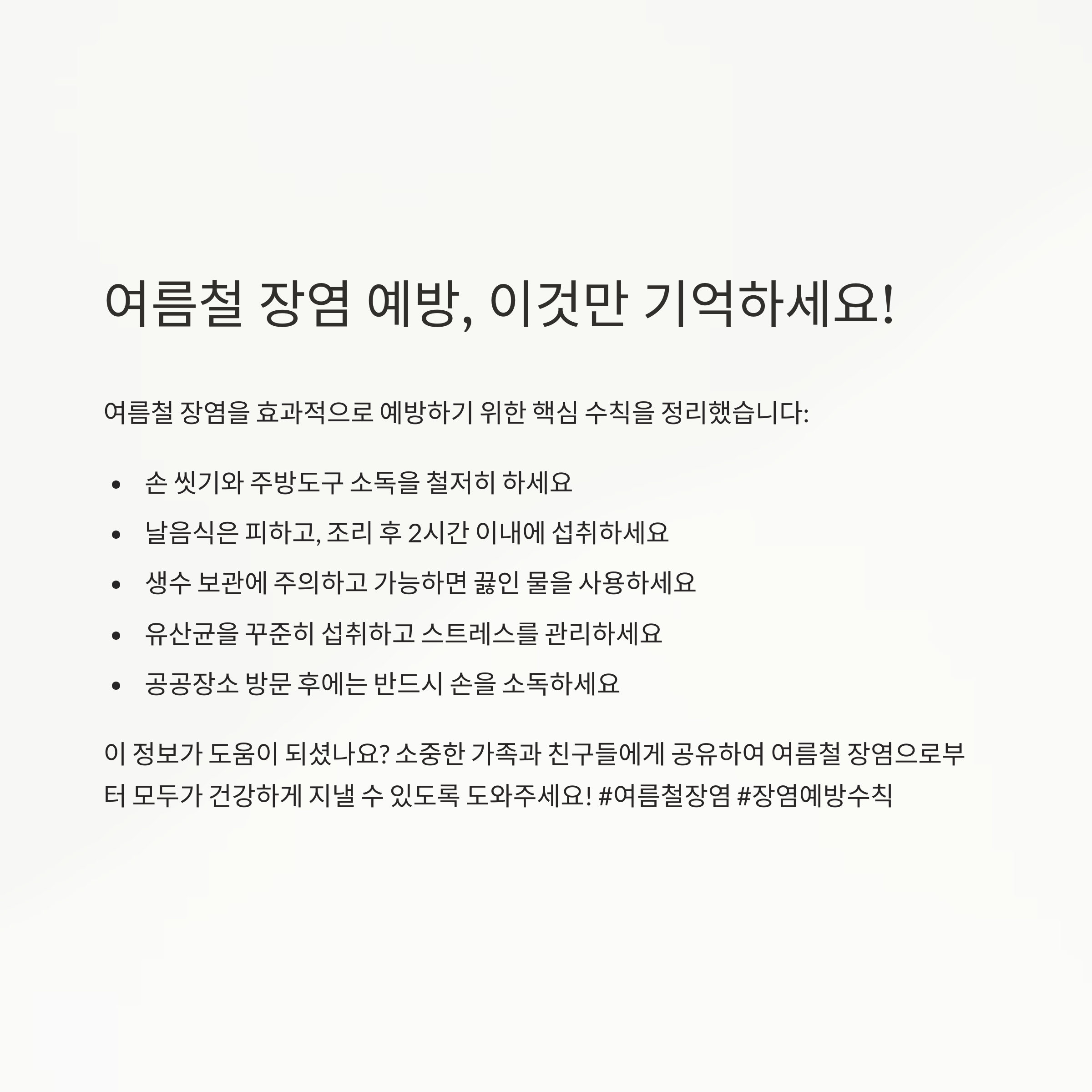마지막으로, 여름철 장염을 피하기 위한 생활 수칙을