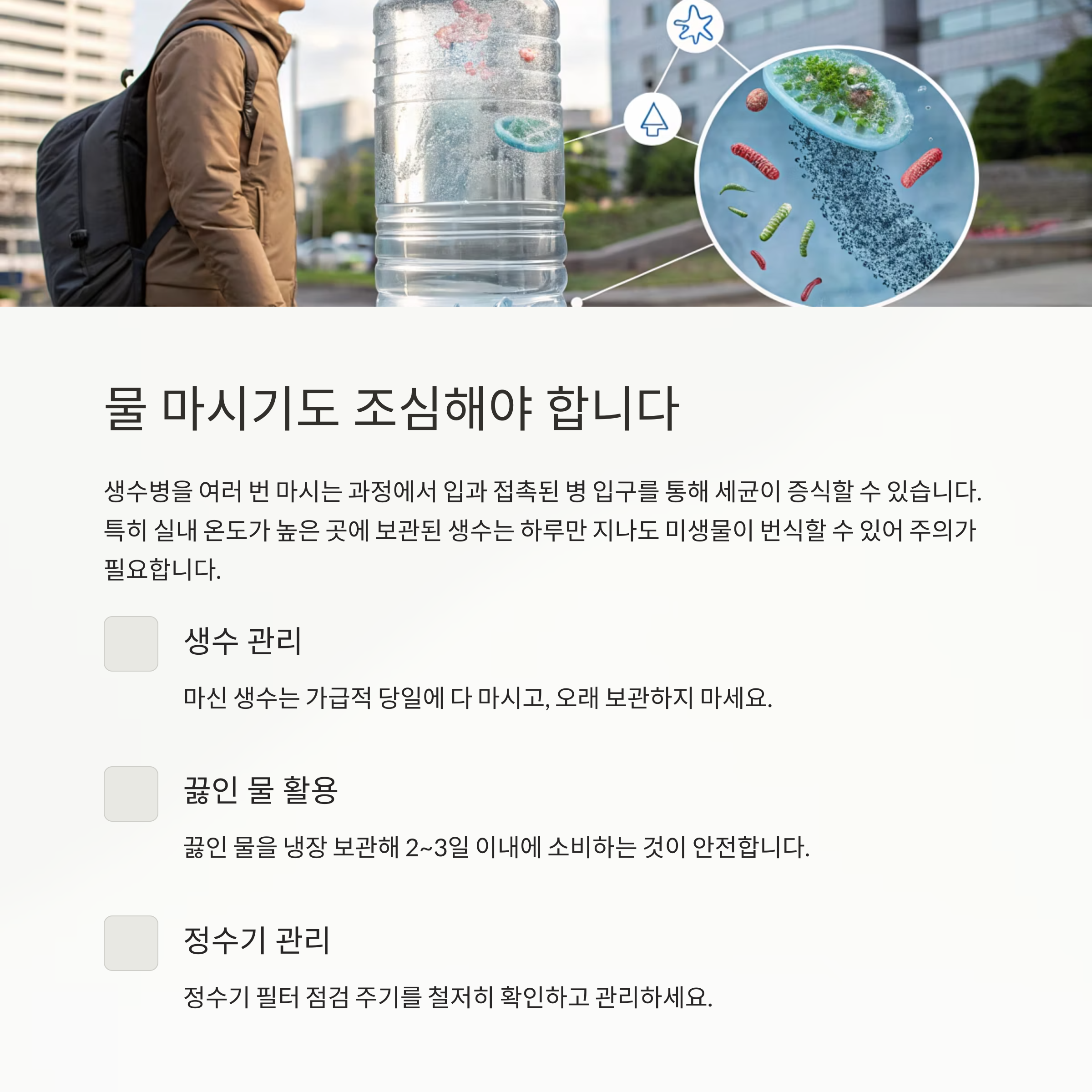 물 마시기도 조심! 생수병 관리와 끓인 물의 중요성
