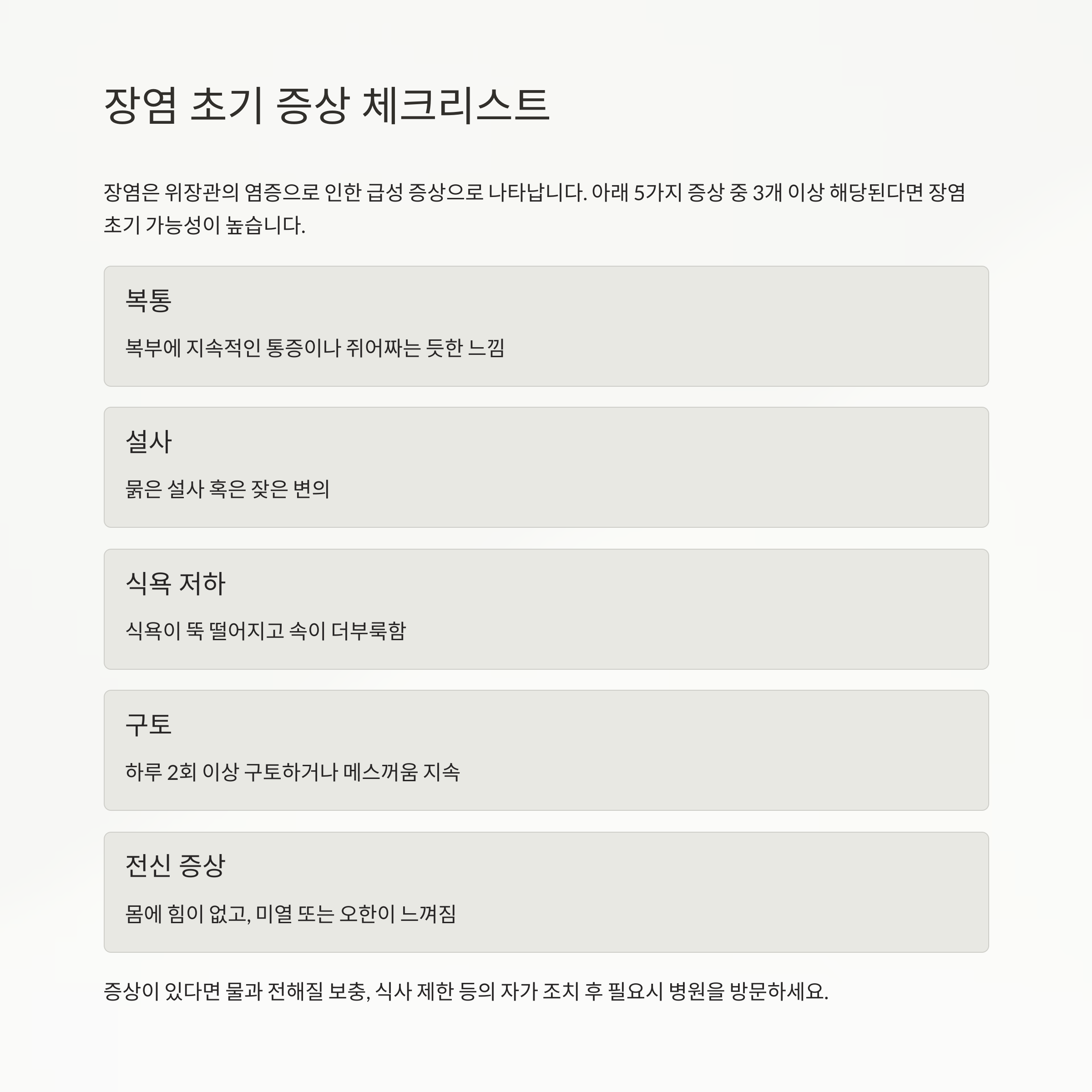 장염 초기 증상 체크리스트 – 이 5가지를 느낀다면 의심하세요